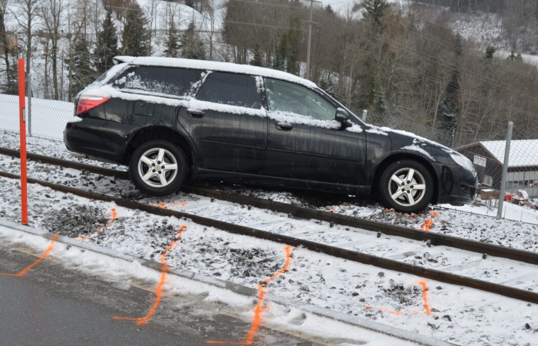 Nach einem Sekundenschlaf landete ein PW-Lenker mit seinem Fahrzeug auf dem Bahngleis.