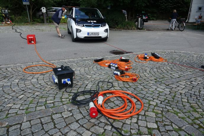 Vor der Ankunft machten viele herumliegende Elektrokabel darauf aufmerksam, dass sich hier bald alles um Elektrizität drehen sollte. Die SAK hatte die bestehende Stromtankstelle mit einem zusätzlichen Verteilkasten ergänzt. Gegen 15 Uhr trafen dann die ersten Teams ein.