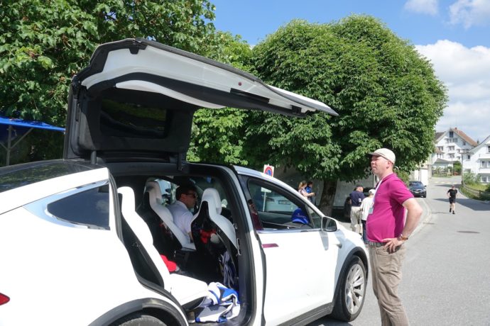 Auffallend häufig vertreten war die US-Marke Tesla. Am Schluss sollten es sechs sein; fünf Modell S und schliesslich noch das Model X mit den futuristischen Flügeltüren hinten.