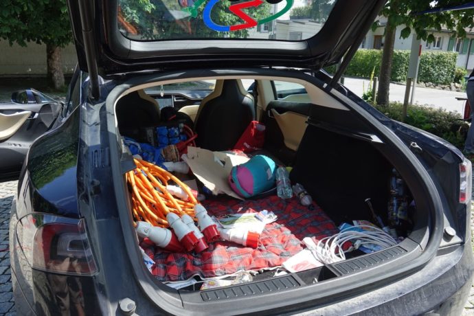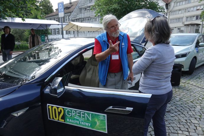 Während ihre Fahrzeuge mit Strom betankt wurden, konnten die Fahrerinnen und Fahrer sich und ihren mobilen Untersatz in einem kurzen Talk vorstellen. Die Reichweite, der Stromverbrauch, die Leistung der Akkus wurden verglichen, und auf Nachfrage hin auch die Anschaffungspreise. Während diese bei einem Tesla vorderhand noch bei rund 100’000 Franken liegen, sind sie bei den gängigen Marken im Bereich eines Mittelklassewagens.