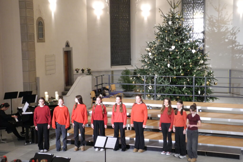 Auch englische Weihnachtslieder sangen die Jugendlichen und verzauberten damit das Publikum. Das bekannte Weihnachtslied «Das isch de Stern vo Bethlehem» sangen alle Anwesenden gemeinsam. Durch das Konzert begleitete Mihaela Stefanova am Flügel.