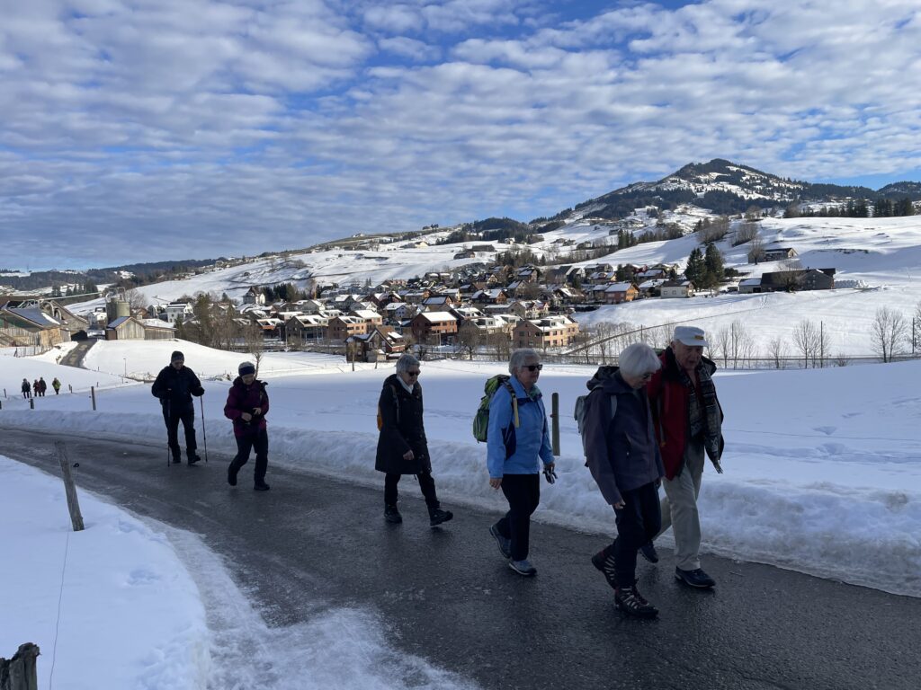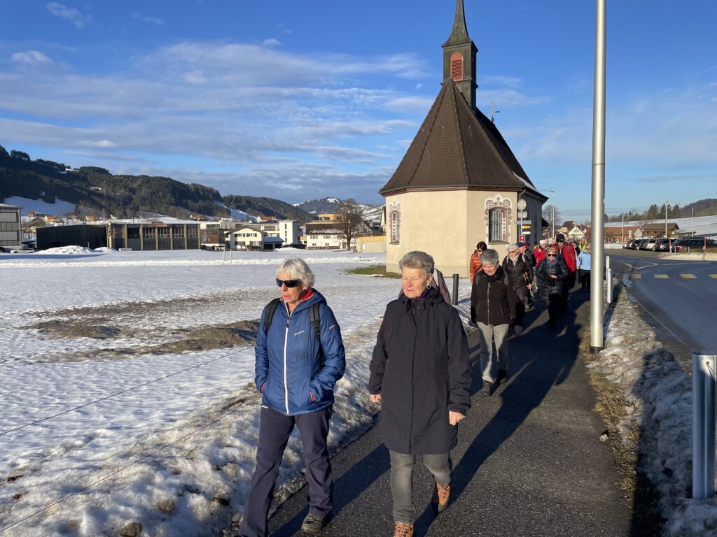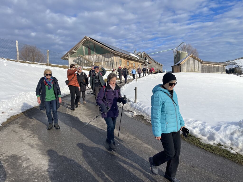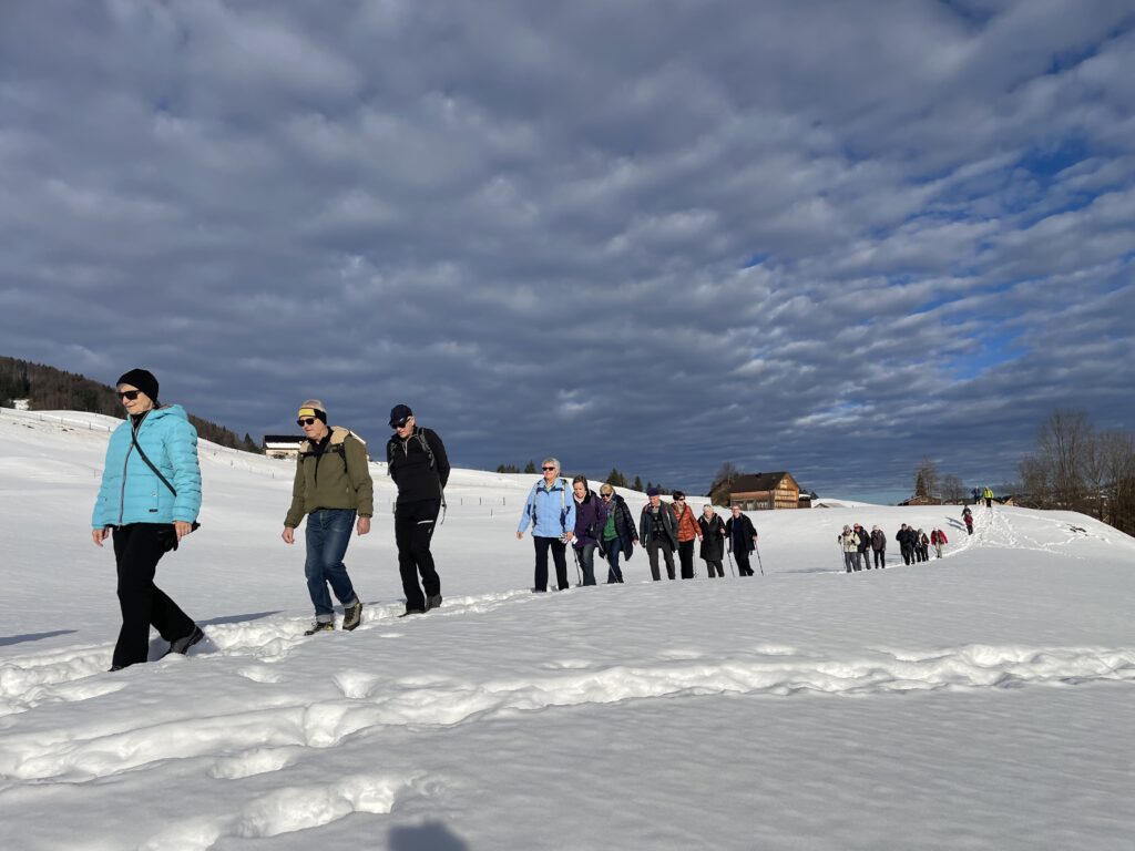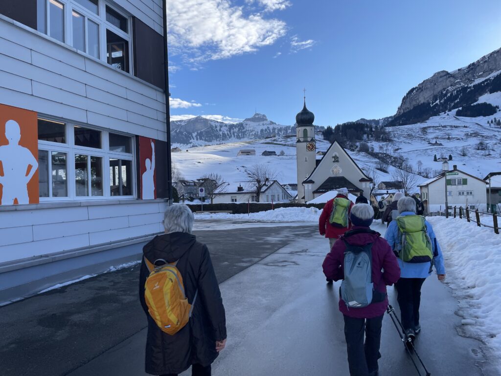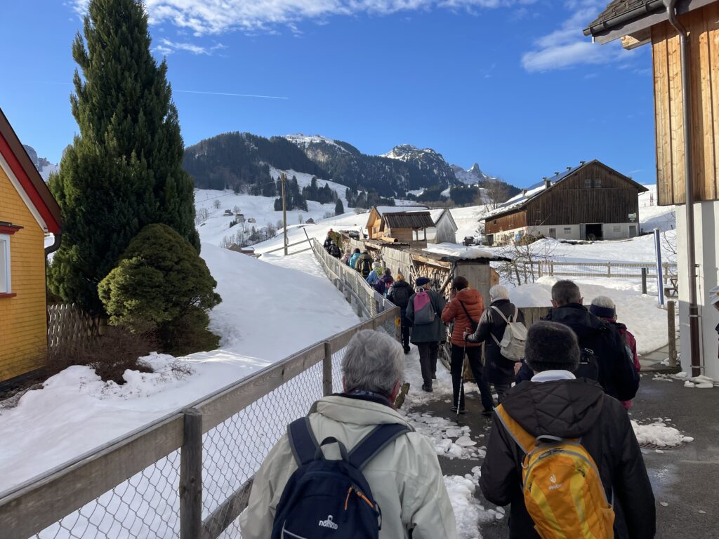 Die Freude ist gross beim Wiedersehen im neuen Jahr. Die erste der elf geplanten Wanderungen steht an. Sie führt über verschiedene, zum Teil weniger bekannte Wege von Steinegg nach Wasserauen und zurück. Einzelne wandern bis Appenzell. Mit der  wärmenden Sonne im Gesicht ins kühle Schattental und zurück.