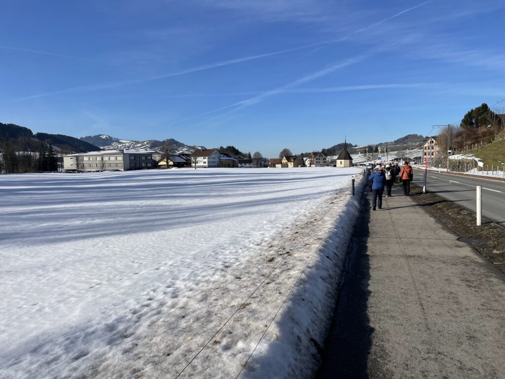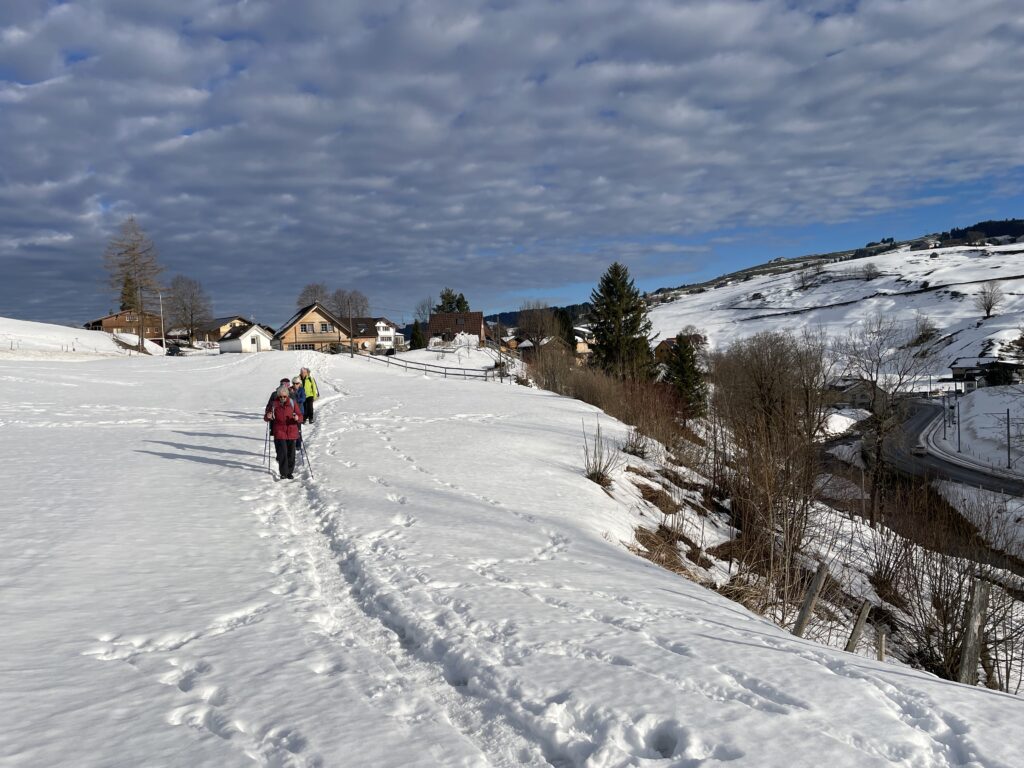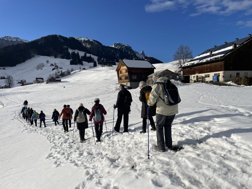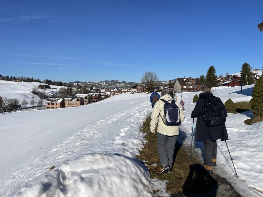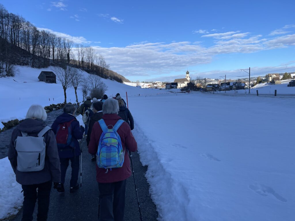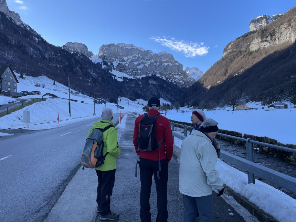 Die Freude ist gross beim Wiedersehen im neuen Jahr. Die erste der elf geplanten Wanderungen steht an. Sie führt über verschiedene, zum Teil weniger bekannte Wege von Steinegg nach Wasserauen und zurück. Einzelne wandern bis Appenzell. Mit der  wärmenden Sonne im Gesicht ins kühle Schattental und zurück.
