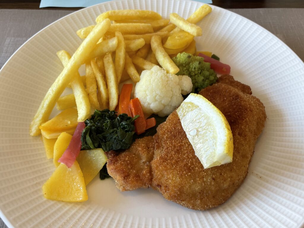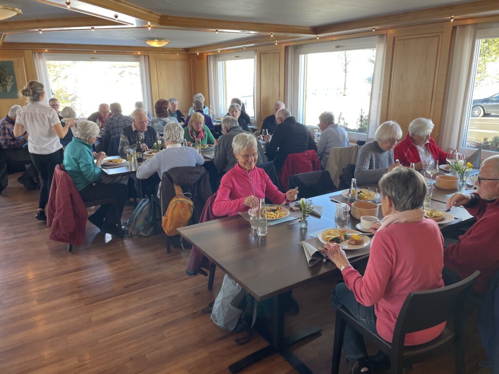 Auf der anderen Seite des Schwendebachs führt der Weg hinauf zum Hotel und Restaurant Alpenblick. Hier werden wir so richtig verwöhnt, je nach Wunsch mit Suppe, Hauptgang (Schnipo oder Bärlauchspätzli mit acht verschiedenen Gemüsen) sowie Dessert und Kaffee. Die Atmosphäre ist gediegen und die Stimmung vertraut und familiär.