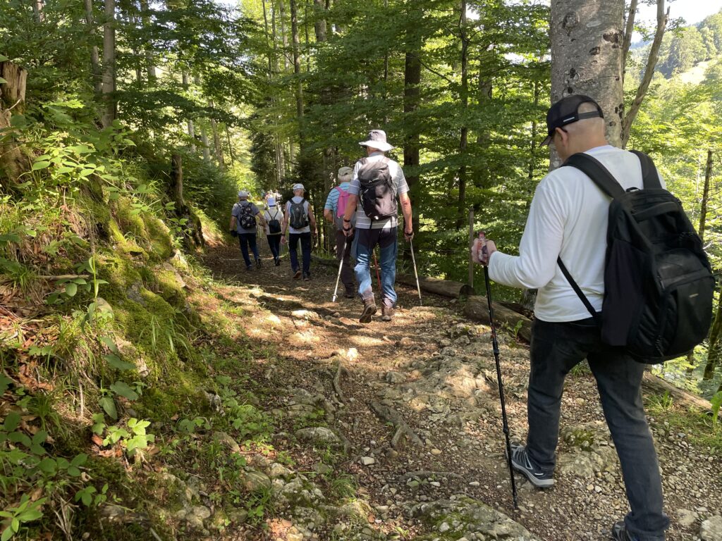 Bei der heutigen Wanderung hätte man die Variante kurz mit rund 7 km wählen und bereits in Nesslau in den Zug steigen können. Nach dem stärkenden Picknick sind aber alle motiviert bis Krummenau weiterzuwandern. Die Mehrheit besteigt dort nach gut 10 km Gesamtdistanz den Zug. Beim Zwischenhalt in Wattwil, gönnen sie sich im «Madlen’s Café» kulinarische Köstlichkeiten, bevor sie gegen 15.30 Uhr die Heimreise antreten.