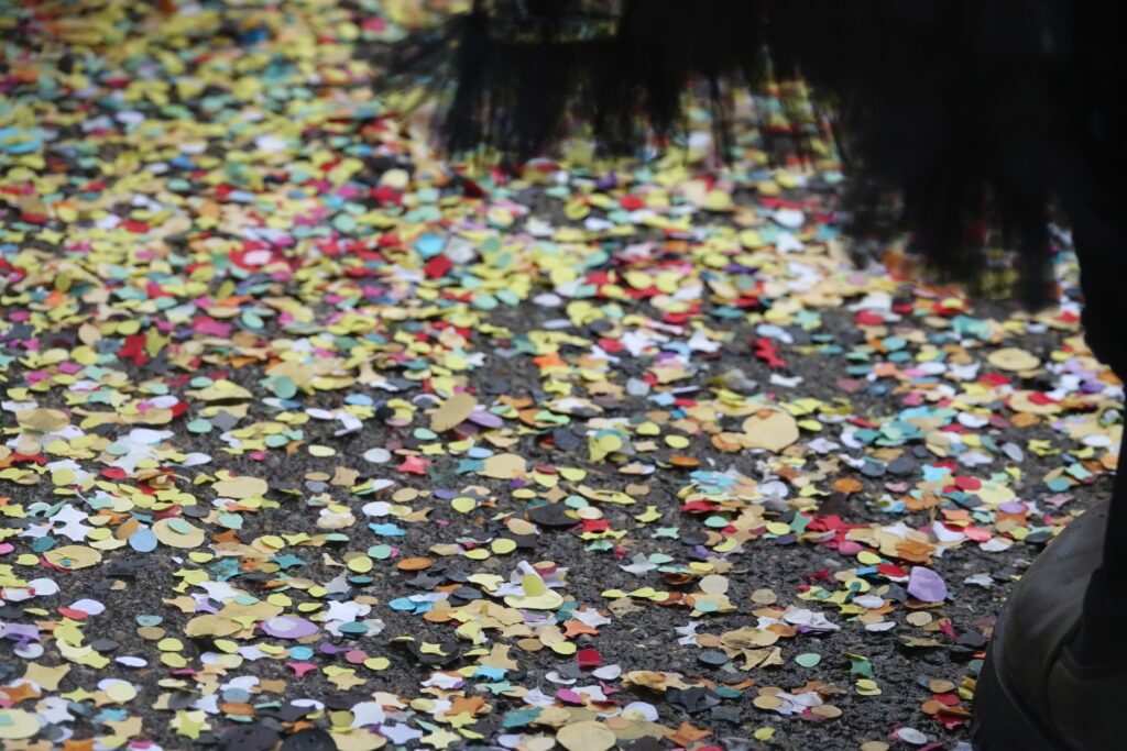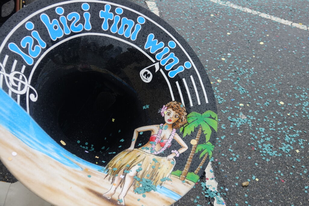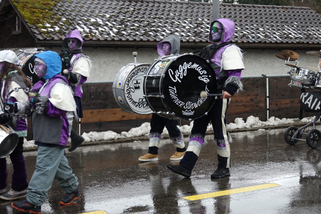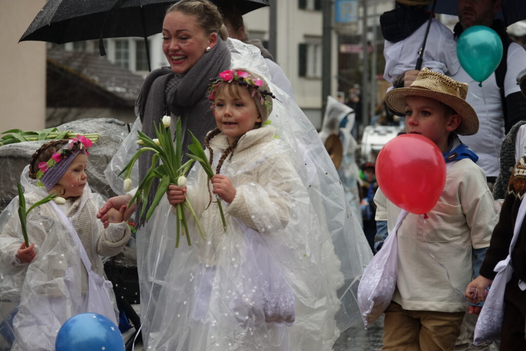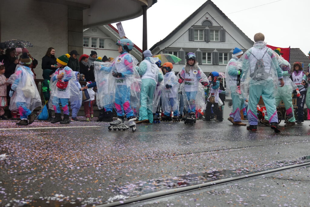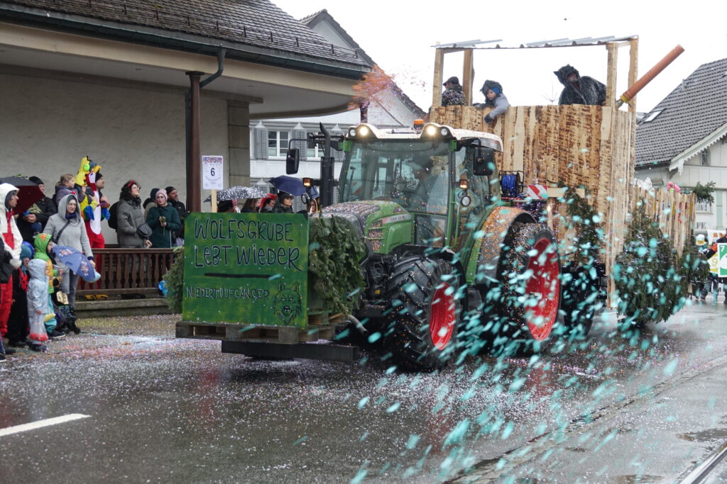 Angeführt wurde der Umzug von der Guggenmusik Tüüfner Südwörscht. Entlang der Strecke regnete es Konfetti, zudem wurden Süssigkeiten an die Zuschauenden verteilt. Kleine und grosse Wagen waren zu sehen, alle aufwändig gestaltet und mit schönen, spannenden Details versehen, teilweise auch mit Konfettikanonen ausgerüstet.