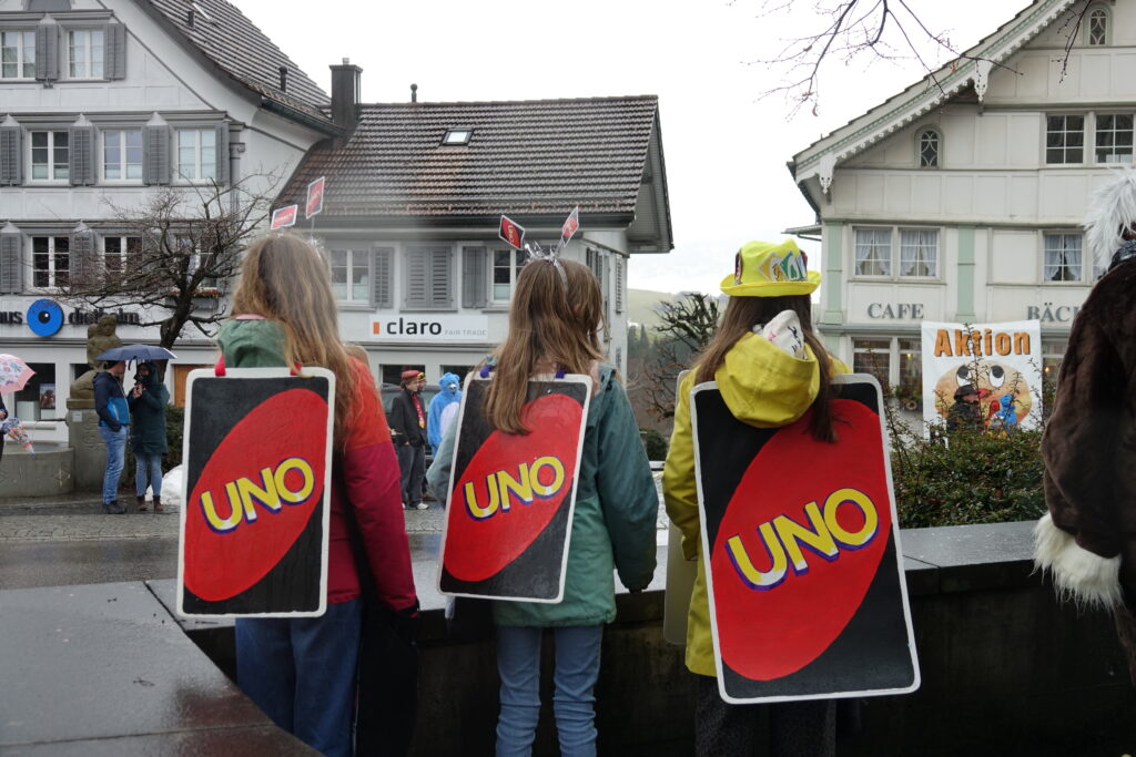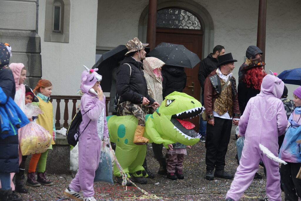 Der Umzug endete wie gewohnt beim Zeughaus, wo sich viele Besuchende aufwärmten und dann mit den Kindern die Kinderfasnacht genossen. Organisiert wurde der Fasnachtsumzug und die Kinderfasnacht vom Kinderfasnachts-Komitee und der Frauengemeinschaft Teufen-Bühler.