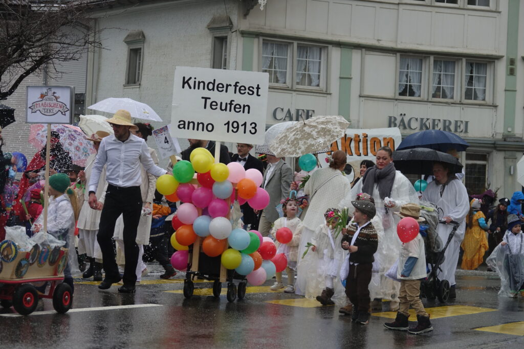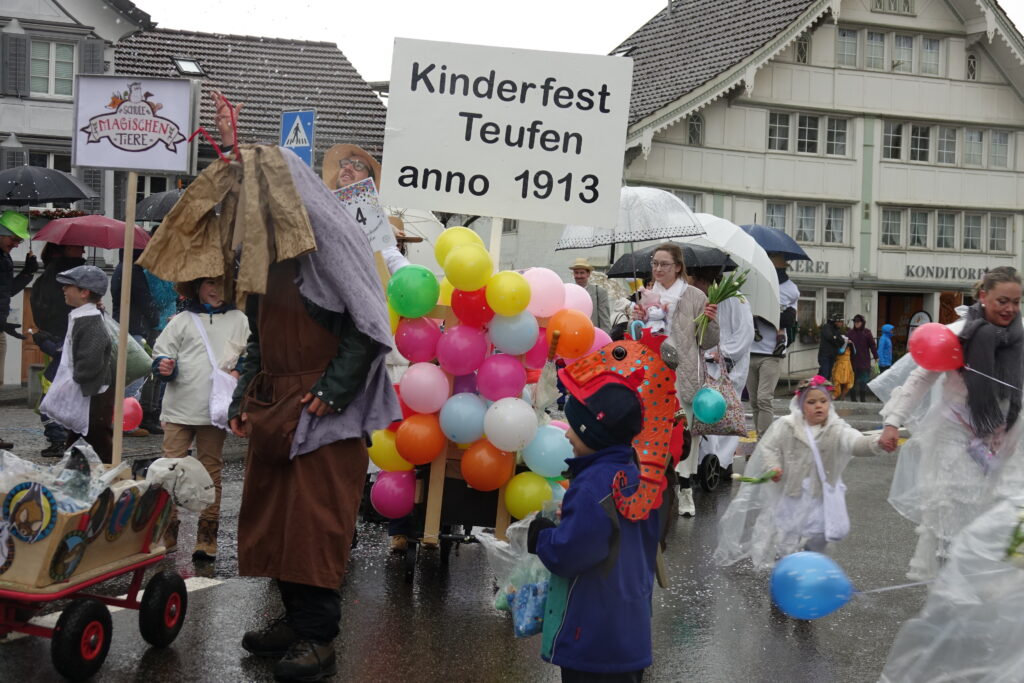 Beim Fasnachtsumzug am 21. Februar in Teufen stand das Motto «Die Mythen von Teufen – vergessene Geschichten» im Mittelpunkt. Trotz regnerischem und garstigem Wetter nahmen viele Fasnächtlerinnen und Fasnächtler am Umzug teil. Und auch zahlreiche Zuschauende säumten die Strassen bis zum Zeughaus.