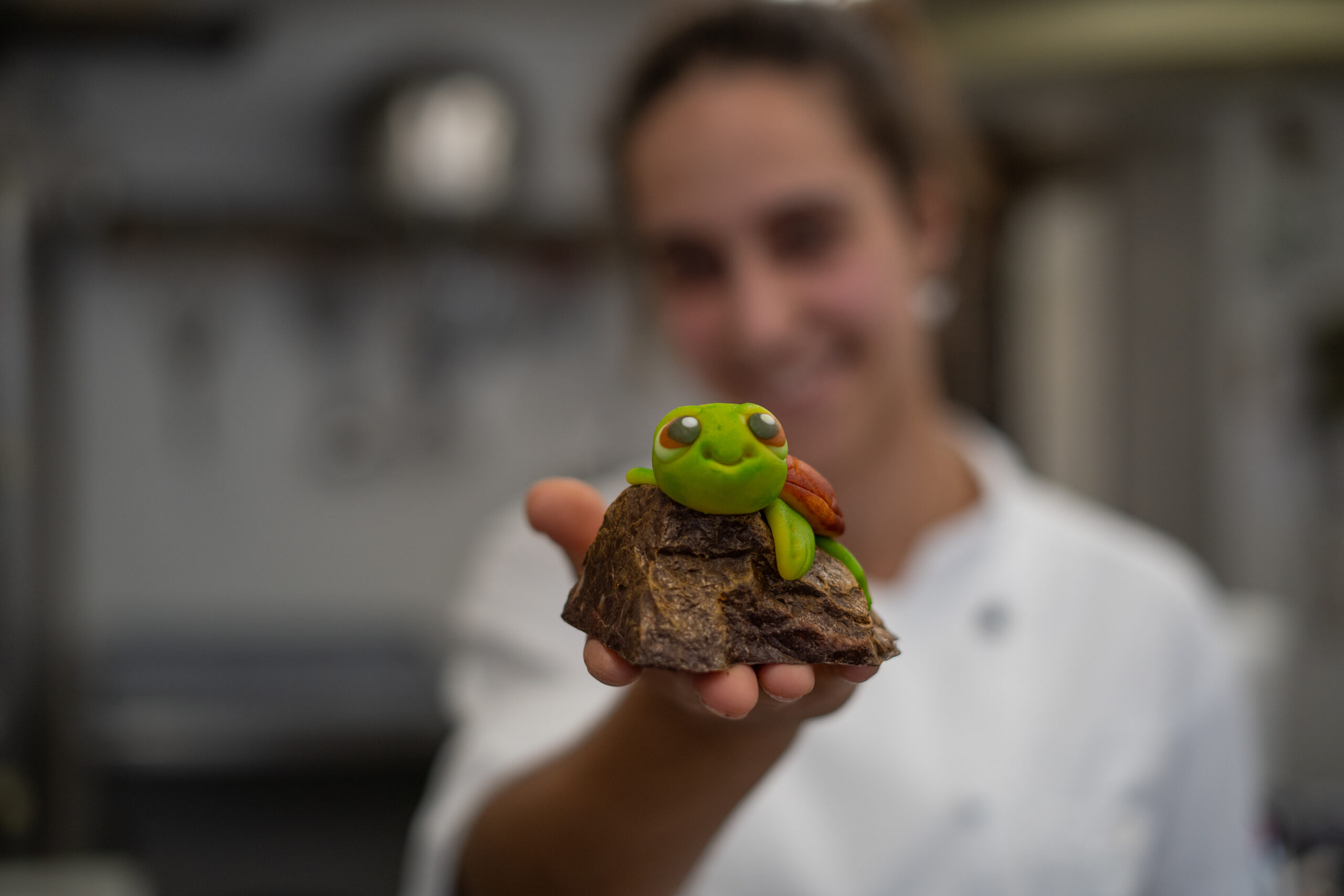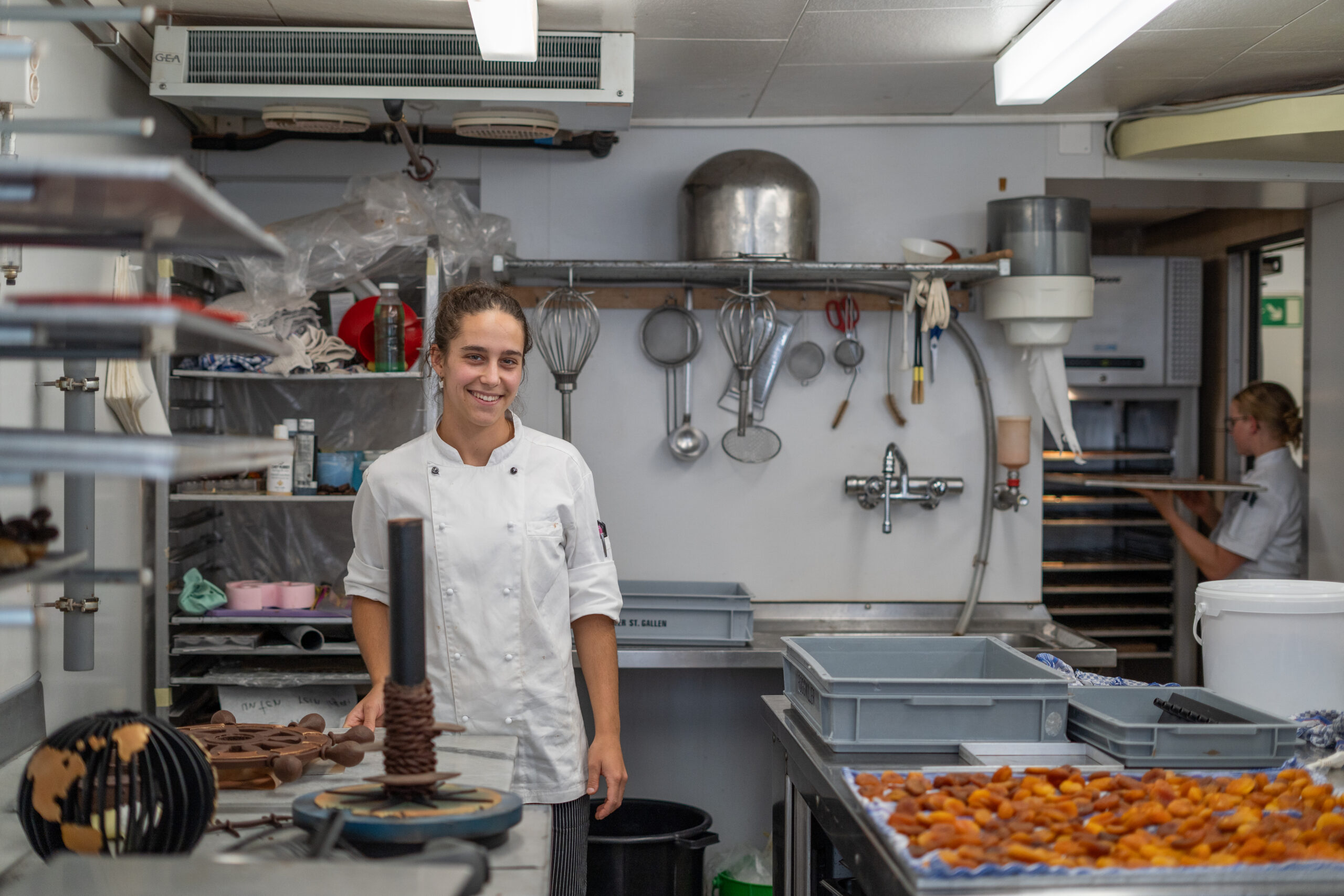 Entsprechend viel Vorbereitung braucht die Teilnahme. «Ich bin seit Wochen intensiv dran. Nach Hause gehe ich nur zum Schlafen und Duschen», sagt Marlene Bruderer. Sie ist 18 Jahre alt, bald 19. «Anfangs wollte ich gar nicht unbedingt teilnehmen.» Familie, Freunde und Arbeitskollegen und -kolleginnen konnten sie dann aber überzeugen. Mit ihrem sehr guten Lehrabschluss wurde sie als eine von fünf möglichen Teilnehmerinnen aus den Kantonen St. Gallen, Glarus, Lichtenstein und beiden Appenzell nominiert. «Und dann musste ich mir natürlich erstmal überlegen, was ich machen will.» Als Konditorin ist sie es sich gewohnt, kreativ zu sein und Neues zu gestalten. Für die Swiss Skills hat sie aber einige Vorgaben. Das Thema ist Reisen. Herstellen nach eigenem Rezept muss sie eine Torte, Tartelettes, Pralinen, Fantasiefiguren – das ist eine frei gestaltete Marzipanfigur – und ein Schaustück. Bei Letzterem handelt es sich um eine Schokoladenskulptur. «Essen könnte man die, aber dafür ist sie nicht gedacht.»
