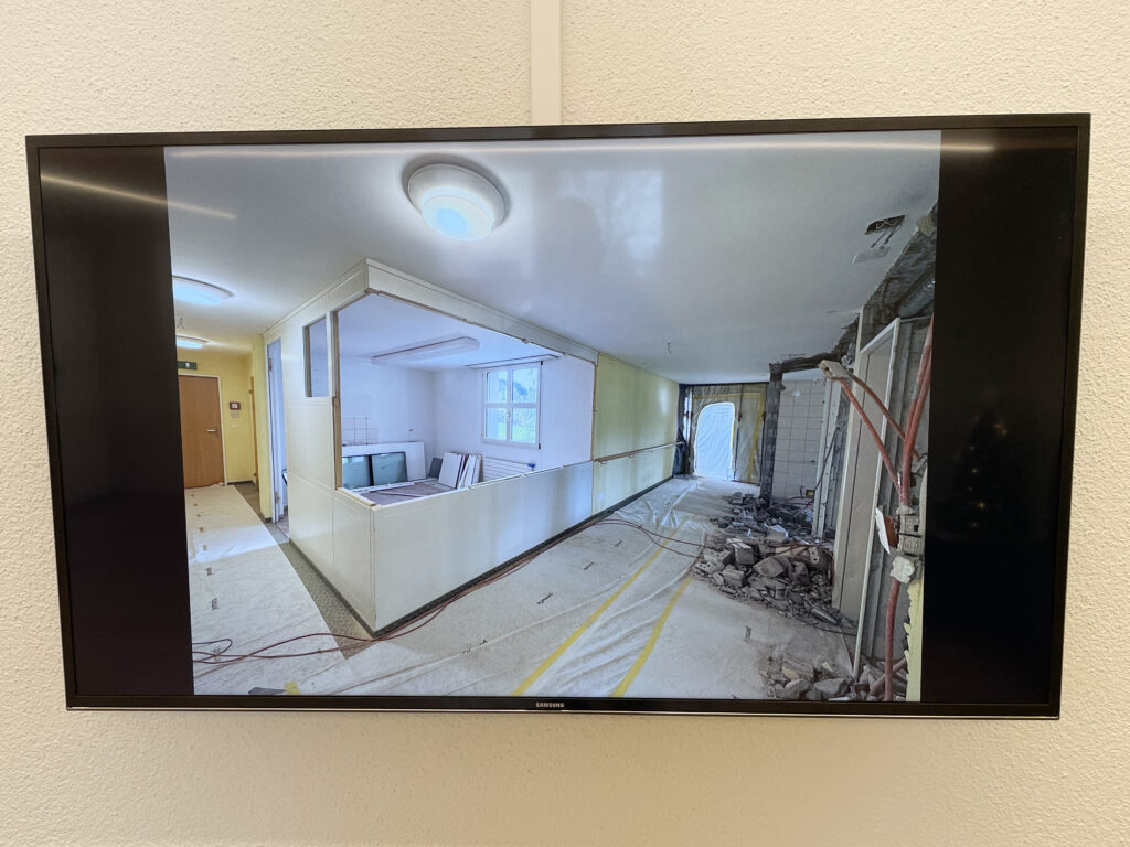 Wird die Eingangstüre geschlossen, zeigt sich eine schöne Berglandschaft im ganzen Eckbereich, mit Blumen, Autos, Kühen und vielen Details zu sehen. Mittendrin verschwindet die Ausgangstüre optisch im Bild. Sie kann nur durch einen Code geöffnet werden. «Dies geschieht zum Selbstschutz unserer fünf künftigen Bewohnerinnen und Bewohner. Sie werden ihre Wohngruppe gerne begleitet verlassen können», erklärt Ursina Moser. Mehr dazu lesen Sie hier.