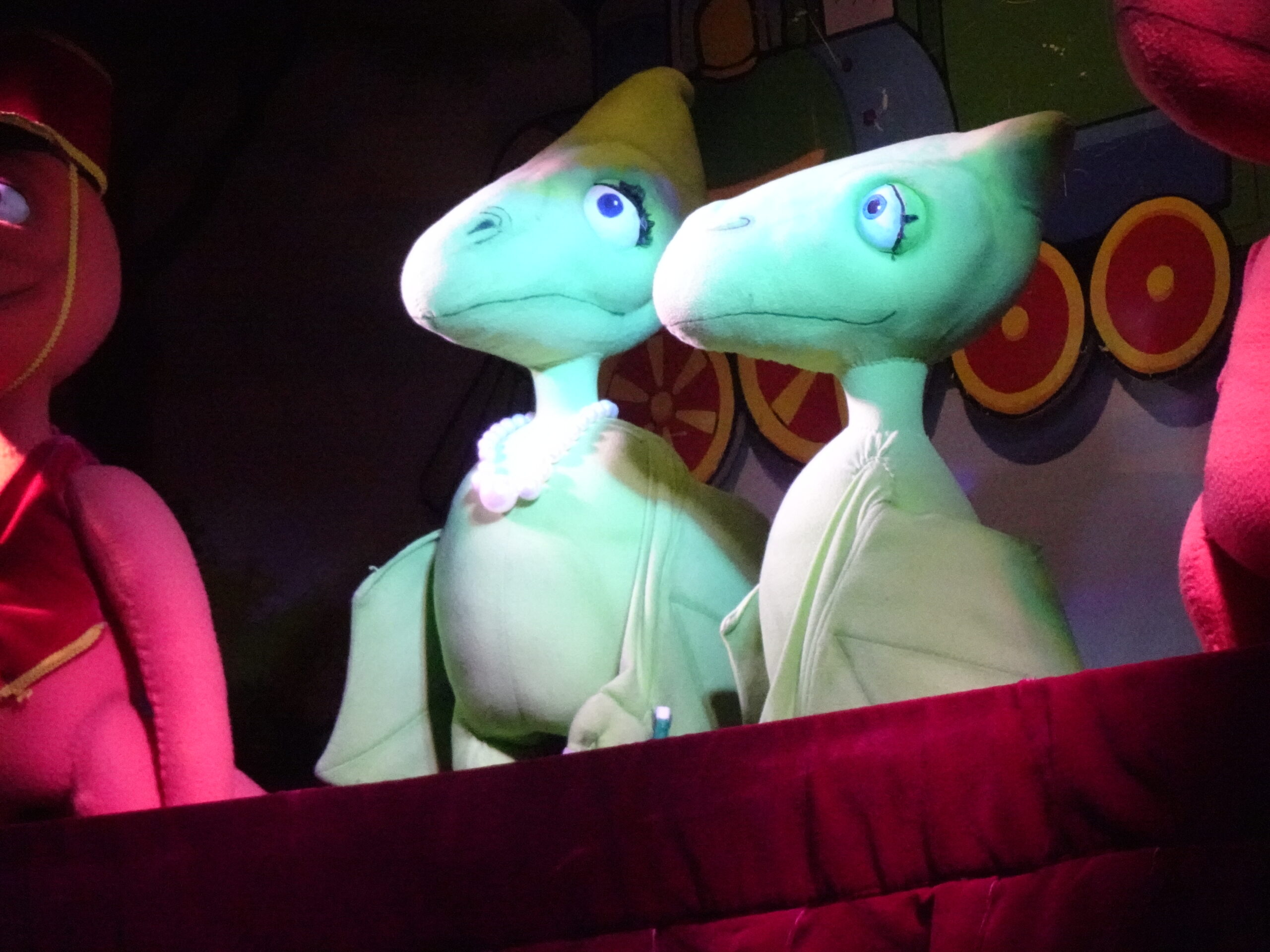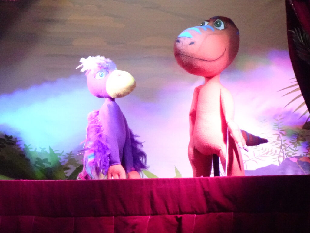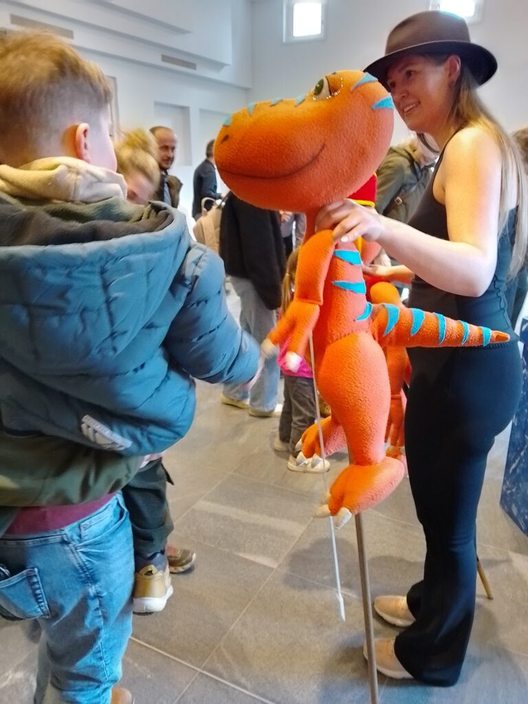 Das spürte auch das Publikum, denn von Beginn an waren die Kinder gespannt bei der Handlung dabei und wurden auch immer wieder in das Geschehen mit einbezogen. Sie begleiteten Dino Buddy, seine Schwester und Mutter mit dem Zug nach Rexhausen und begegneten dabei verschiedenen Dino-Arten. Dino Buddy versuchte herauszufinden, weshalb er anders aussieht als seine Familie und auch andere Begabungen hat. Dabei erfuhren die Zuschauenden, dass jeder etwas gut kann. Dino Buddy konnte mit seinen kurzen Armen Tannenzapfen nicht weit werfen beim Spiel mit seiner Schwester, dafür konnte er sehr gut riechen. Am Schluss erkannte Dino Buddy, zu welcher Dino-Art er gehört. Trotzdem fühlte er sich in seiner Familie wohl, denn manche Kinder sehen zwar nicht aus wie ihre Eltern, aber das Wichtigste ist doch, dass sie sich liebhaben.
