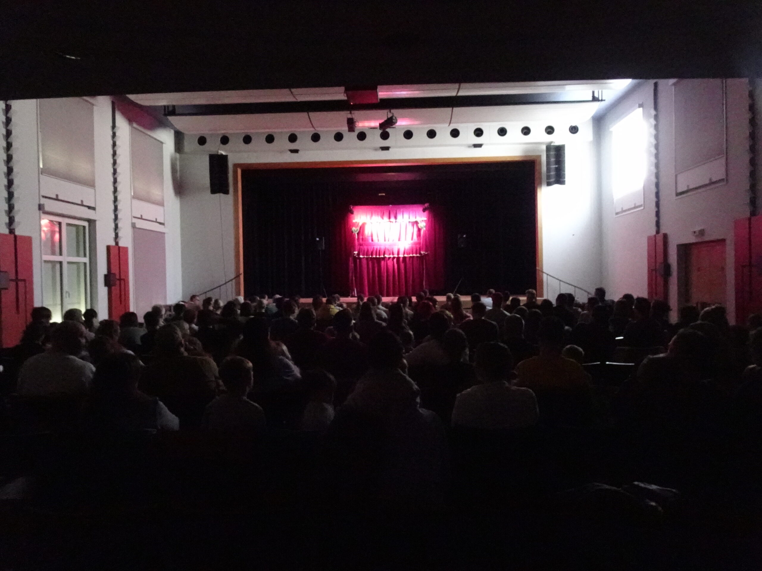 Die grossen Werbeplakate, die in den letzten Tagen überall im Dorf auf den «Zug der Dinos» aufmerksam gemacht hatten, zeigten am Sonntag ihre Wirkung. Das Publikum marschierte zahlreich auf, schon 30 Minuten vor Beginn war der Lindensaal zur Hälfte voll und bis zum Spielbeginn füllten sich der Saal und die Empore immer mehr.