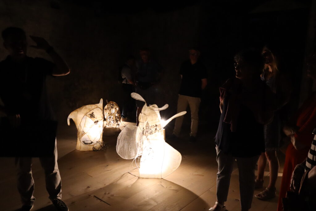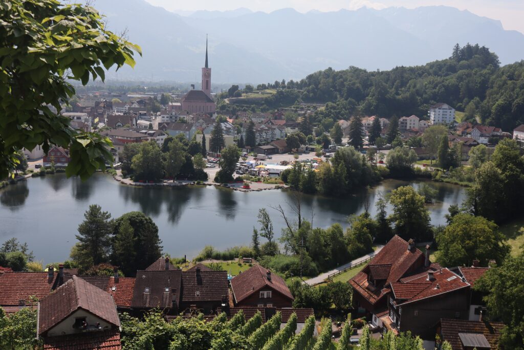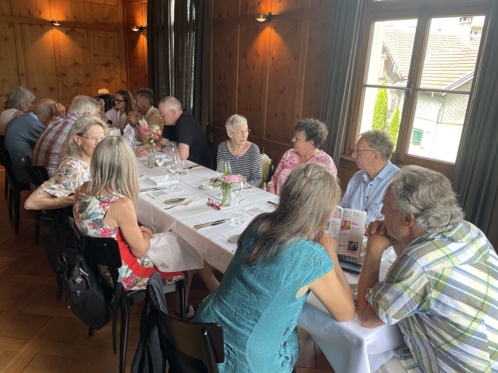 Die Besuchergruppe der LGT war sehr interessiert und neugierig. Leider fehlte die Zeit, sich intensiv auf die vielfältigen Installationen einzulassen. Das Mittagessen im alten Gerichtssaal im Restaurant Traube wartete nämlich. Dort klang der bestens organisierte Ausflug ins Rheintal bei einem feinen Essen und vielen Gesprächen langsam aus.
