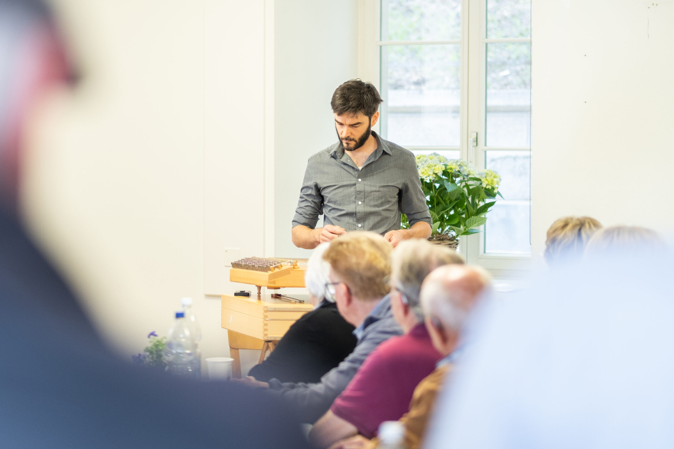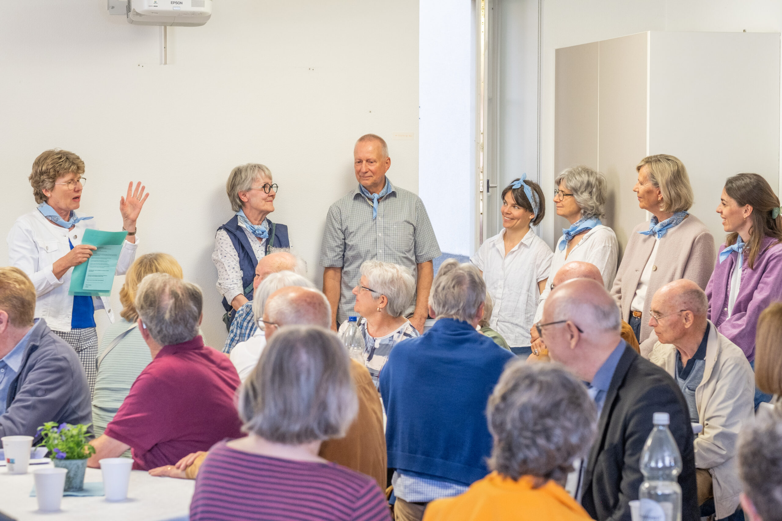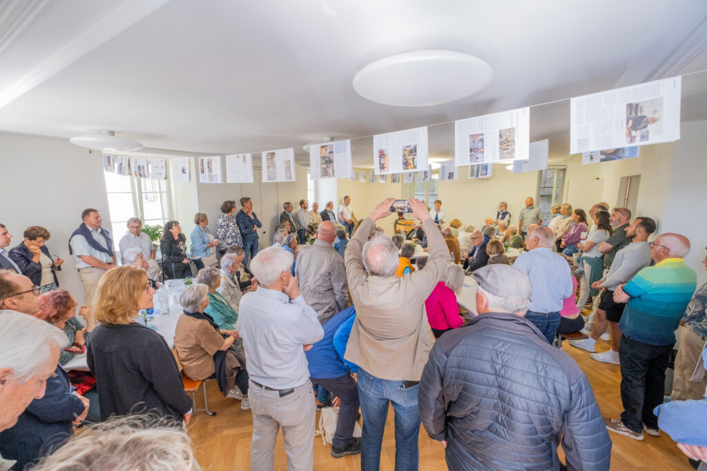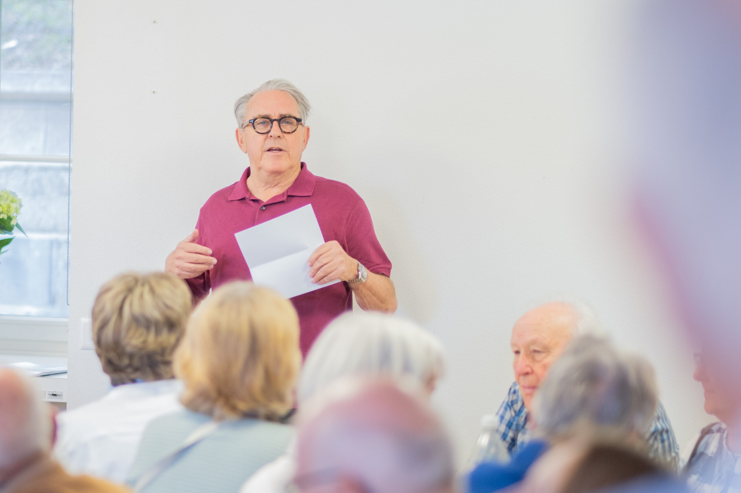 Der Platz im grossen Schulzimmer im Erdgeschoss wurde knapp, als Vereinspräsidentin Ursula von Burg um 11:30 Uhr die Gäste begrüsste. «Es freut mich unheimlich, dass so viele Menschen gekommen sind. Und dass darunter so viele bekannte Gesichter sind – inklusive einiger Gründungsmitglieder.» Diese Gründung war im Spätherbst 1995. Im Dezember wurde die 0-Nummer in Teufen verteilt – damals noch namenlos. Dieses Problem sollte mit einer Umfrage gelöst werden. «Es gingen über 600 Vorschläge ein. Eine unglaubliche Resonanz», sagte Andreas Heller. Er ist eines ebendieser Gründungsmitglieder und erzählte von den Anfängen der inzwischen gut etablierten Dorfzeitung. «So eine Zeitung zu entwickeln, ist natürlich eine sehr spannende Angelegenheit. Da geht es ums Layout, das Papier, die Schrift, die Rubriken, und, und, und.» Er erinnert sich auch heute noch gern an das befriedigende Gefühl, als er und seine Mitstreiterinnen und Mitstreiter realisierten, dass ihr neu geschaffenes Produkt auch wirklich ankommt. «Die Zeitung hat sich zudem während der vergangenen 30 Jahre stets weiterentwickelt, der Umfang hat sich vergrössert und die Qualität ist sehr hoch», sagt der ehemalige NZZ-Journalist.