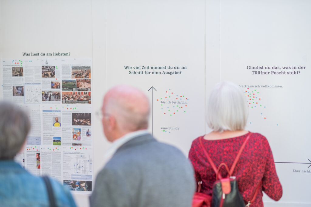Wie feiert man den Geburtstag einer Dorfzeitung? Mit dieser Frage war der Verein Tüüfner Poscht angesichts des 30-jährigen Jubiläums konfrontiert. Viele Ideen wurden diskutiert. Und wieder verworfen. Schliesslich fiel die Entscheidung auf eine Pop-Up Ausstellung, die die Entstehungsgeschichte der «Tüüfner Poscht» aufarbeiten, spannende Artikel aus 30 Jahren zeigen und einen Blick hinter die Kulissen ermöglichen soll. Diesen Samstag wurde Vernissage gefeiert – im und vor dem ehemaligen Schulhaus Dorf.