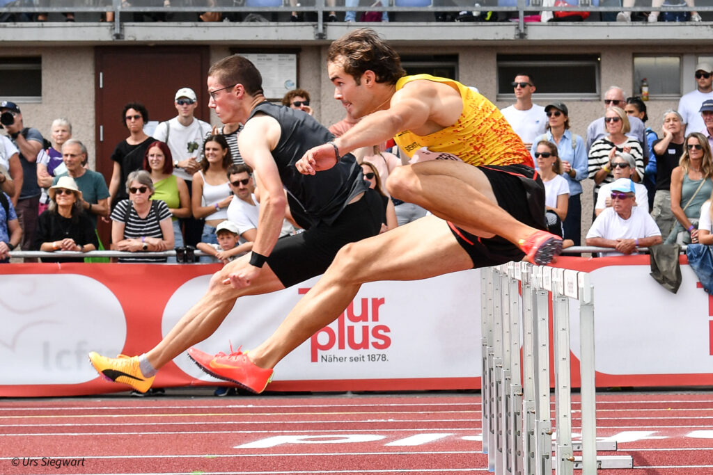 Einmal mehr bestätigte Nino Camiu seine enormen Fortschritte. Nach einem überlegenen Vorlaufsieg zündete der Gaiser U18-Athlet im Final ein wahres Feuerwerk. Er verbesserte seinen eigenen Schweizer Rekord um 1.17sec auf international beachtliche 51.23 sec und gewann mit rund 3 Sekunden Vorsprung über 400m-Hürden.