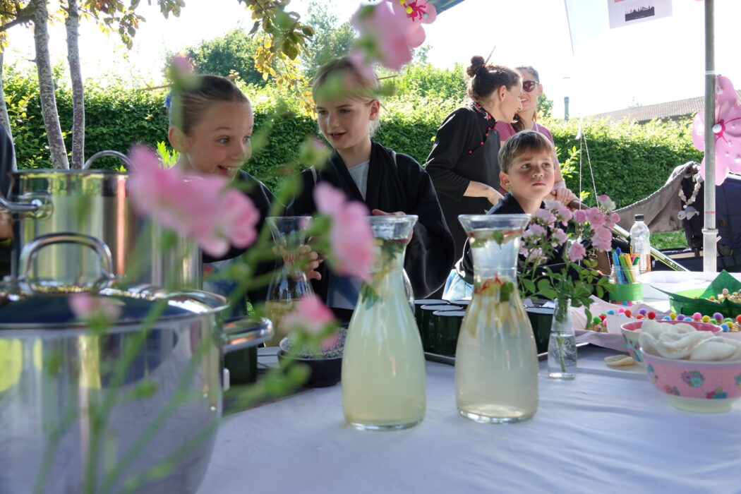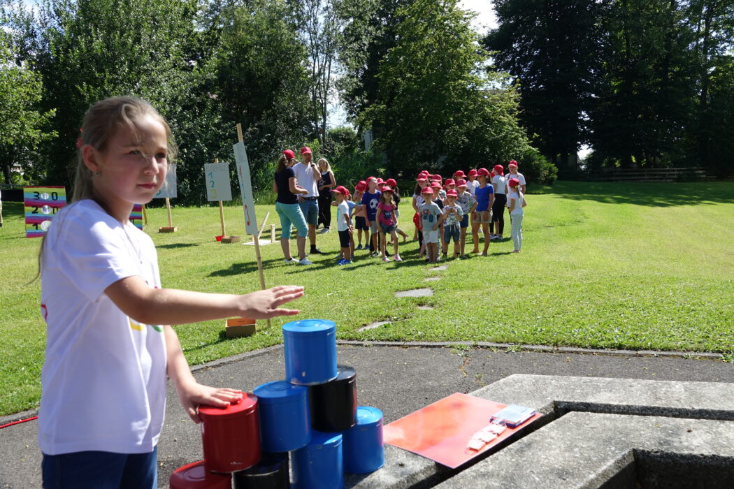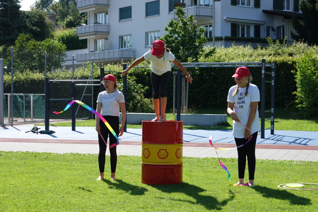 Auf dem Pausenplatz tanzte eine Gruppe Mädchen zu Salsa-Klängen und versprühten kubanische Lebensfreude. Im Teegarten von Japan lud der schön dekorierte Platz hinter dem Kindergarten zum Verweilen ein und selbstverständlich gab es Tee und Glücks-Kekse von Schülerinnen und Schülern in den selbstgenähten Kimonos. Beim Büchsen-, Pfeil- und Bogenschiessen und Geschicklichkeitsspielen wurde in Griechenland der Olympiasieg vergeben. Zwar waren die Teilnehmenden alle bemüht gute Resultate zu erzielen, allerdings schienen sie mehr Spass als Ehrgeiz mitzubringen und es wurde viel gelacht.