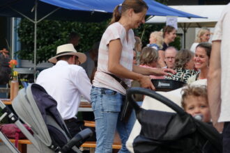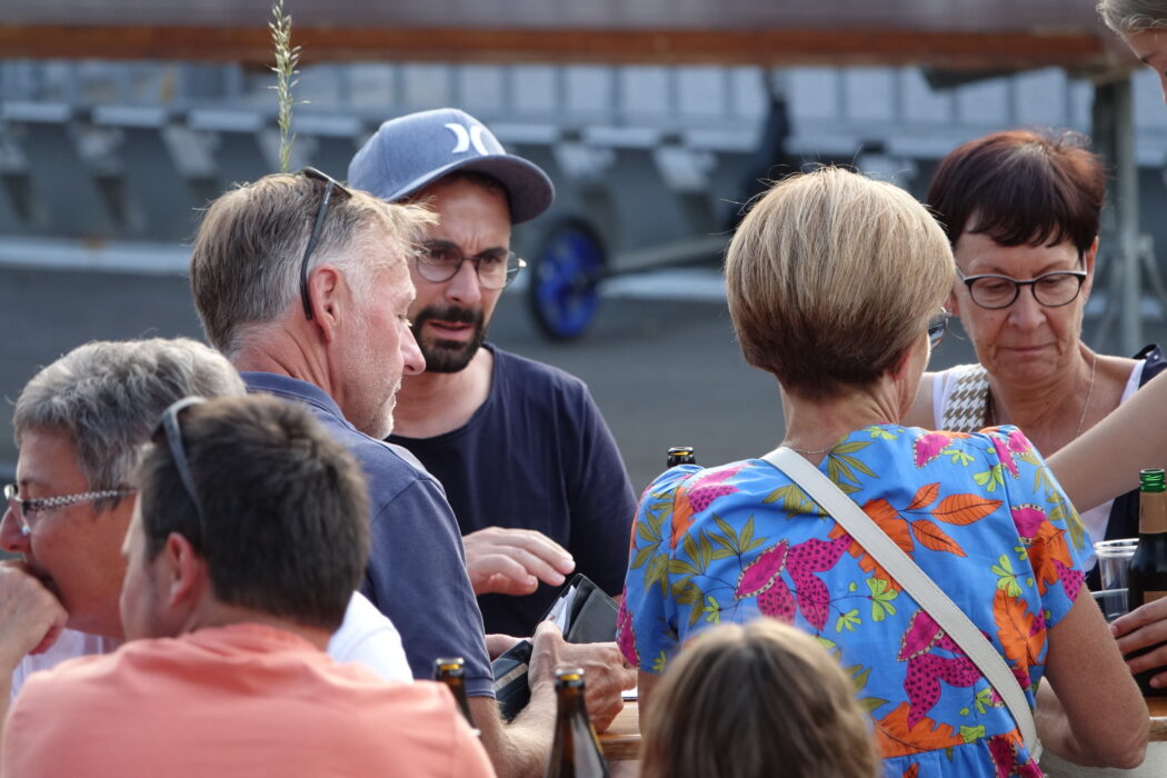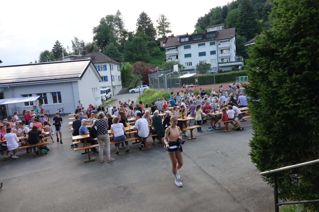 Spannend war es bereits vor dem Fernwehfestival, als sich Mitte Nachmittag eine Gewitterzelle über Niederteufen entlud. Doch danach blieb es trocken und warm und auch das anschliessende Quartierfest vom Einwohnerverein Niederteufen-Lustmühle wurde rege genutzt um zu schwatzen und fein zu essen. Alle Tische waren besetzt und Jugendliche servierten den Gästen Getränke und Kuchen.
