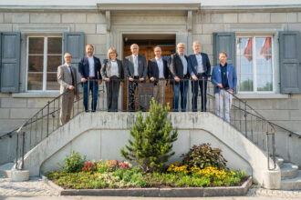 Am 1. Juni hat die nächste Legislatur begonnen. Und damit auch die vierjährigen Amtszeit der neu- oder wiedergewählten Gemeinde- und Kantonsräte. Heute folgte nun die erste Sitzung des Gemeinderats in aktueller Zusammensetzung. Bevor allerdings die offizielle Sitzung im Ratssaal abgehalten wurde – nach der Konstituierung – posierten die sieben Männer und die eine Frau für das Gruppenfoto vor dem Gemeindehaus. Die TP hat ebenfalls auf den Auslöser gedrückt – aus sicherer Entfernung.