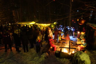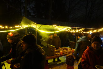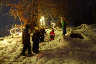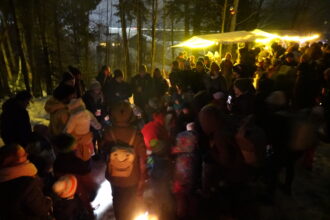Eine grosse Schar von Kindern begleitet von ihren Eltern und Grosseltern zog mit Fackeln vom Zeughausplatz zur Feuerstelle im Carl-Zürcher-Wald. Der schneebedeckte Weg war ziemlich rutschig, aber auch stimmungsvoll beleuchtet. Oben angekommen, gaben die Kinder die Fackeln ab, und die Gastwirte gaben köstliche Gerstensuppe sowie Punsch und Glühwein aus.