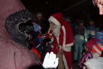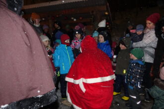 Der Samichlaus mit seinem Begleiter, dem Schmutzli, erreichte ebenfalls den Treffpunkt. Die Kinder trugen ihre Gedichte vor – und für jedes Kind hatte der Samichlaus ein Säckli dabei.