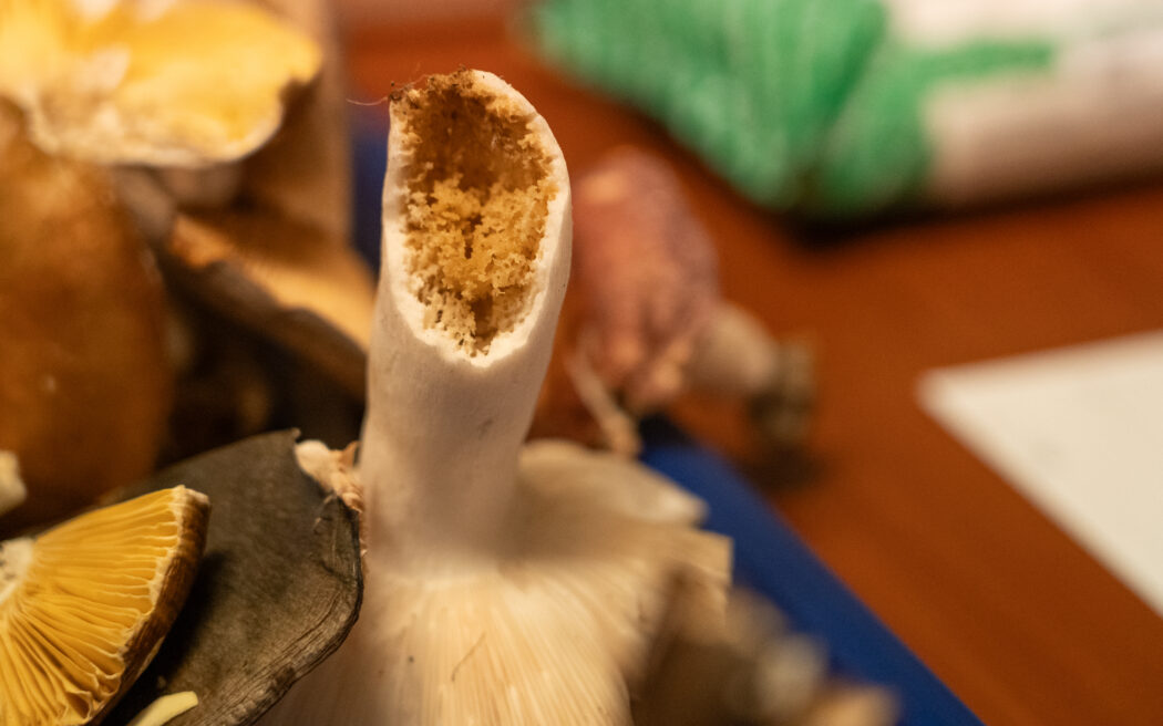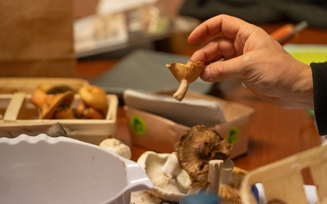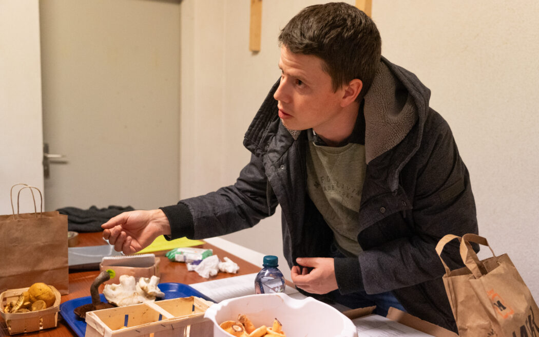 «Den nehme ich euch weg», sagt Manuel Mettler. Der giftige Breitblättrige Rübling wandert in den Sack hinter dem Tisch, an dem der Pilzkontrolleur steht. Alle Pilze sind Magen-Darm-toxisch: eine Vergiftung bekommt man also erst, wenn der Pilz im Magen ist. Einige der Sammler fragen, ob sie die ungeniessbaren Pilze wieder mitnehmen sollen. Manuel Mettler lehnt dankend ab. «Ich werfe die dann bei mir auf den Kompost, dann haben die Schnecken auch noch was davon.» Viele Pilze sind für Menschen giftig, für Tiere aber essbar. «Manche denken, dass alles, was von Tieren angefressen ist, auch von uns gegessen werden kann. Das stimmt leider nicht.» Der Magen eines Menschen kann nicht mit dem von Rehen oder Eichhörnchen verglichen werden.