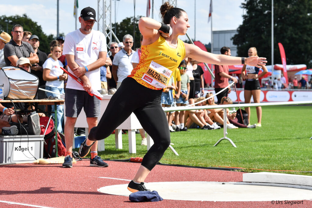 Miryam Mazenauer überzeugte bereits im Vorfeld dieser Titelkämpfe am Werfermeeting in Sarnen mit einer hervorragenden Verbesserung ihrer persönlichen Bestleistung auf 17.75m. In Frauenfeld kam sie nicht ganz an diese Marke heran. Mit 16.92m gewann sie aber überlegen einen weiteren Titel. Ihr grosses Ziel bleibt iin Tokio an den Weltmeisterschaften an den Start gehen zu können. Falls ihr am kommenden Mittwoch eine gute Weite am Diamond League Final in Zürich gelingt, list ein Start an den Weltmeisterschaften zum Greifen nahe.