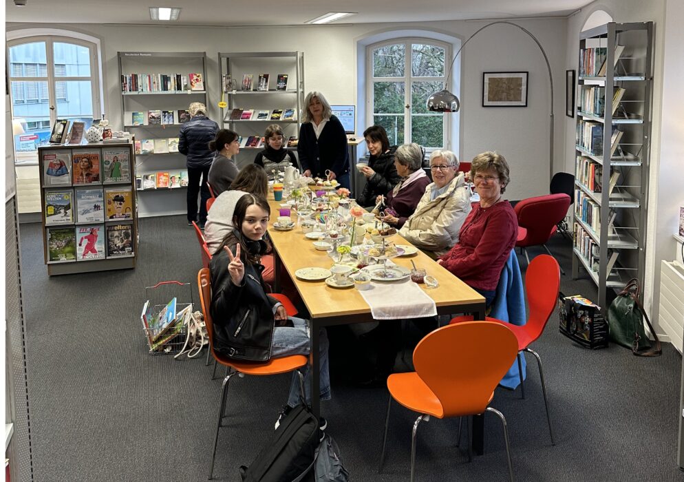 Eingeladen wurde am Freitagnachmittag zum Afternoon Tea – ganz nach dem Motto «Time for Tea, Gebäck und gute Gespräche». Diese entwickelten sich unter den rund 40 Anwesenden ganz von alleine. Die mit Sandwiches, Scones und süssen Küchlein reich bestückten Etageren boten viel Gesprächsstoff, waren doch die Bäckerinnen und Sandwich-Künstlerinnen im Biblio-Team zu finden.
