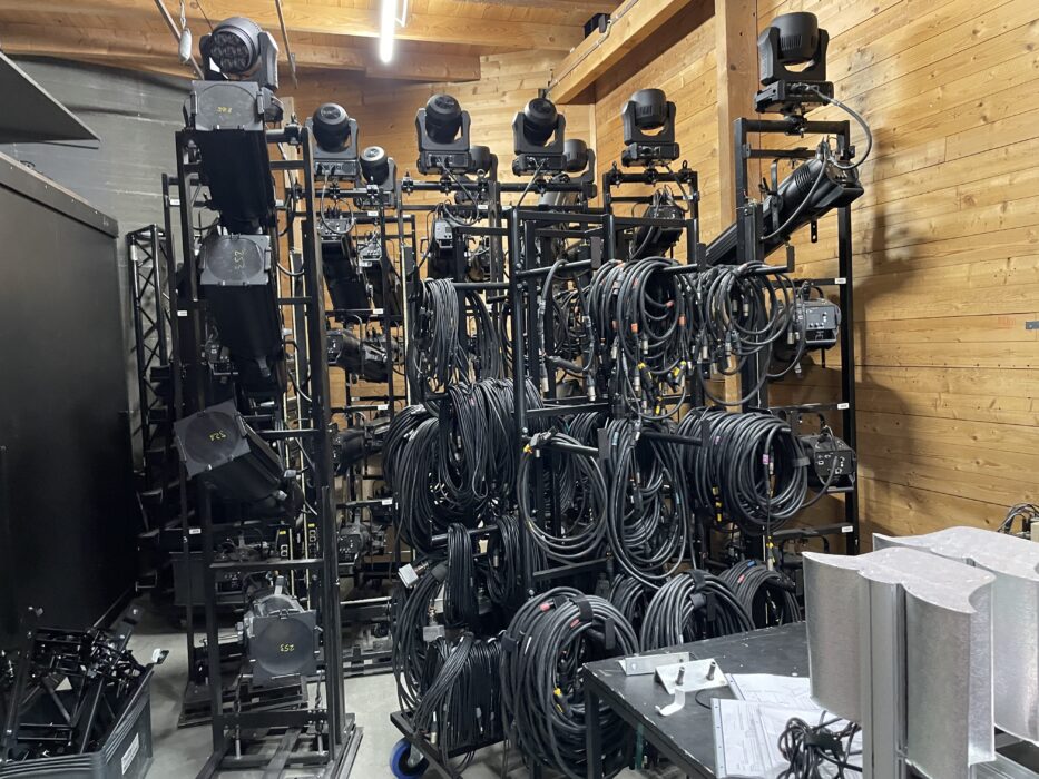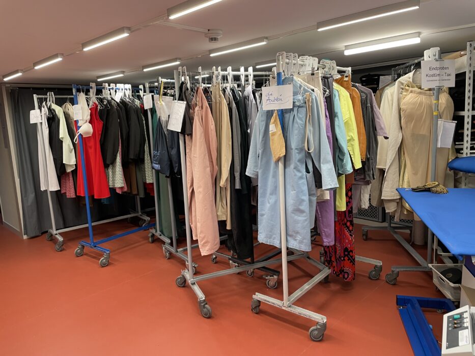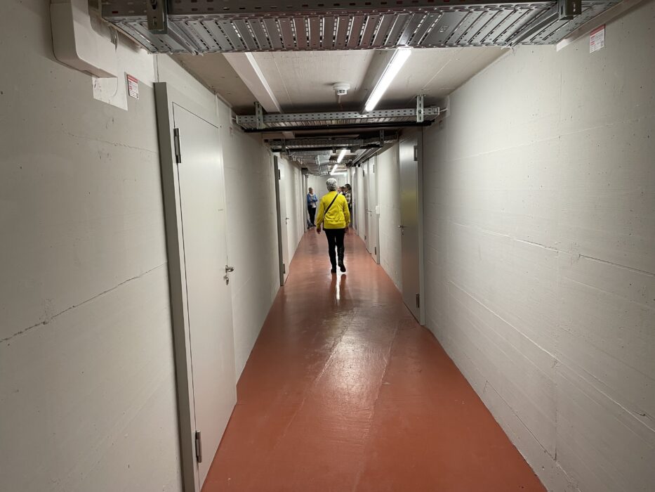 Zahlen und Fakten sind das eine. Das Erlebnis, hinter die Kulissen zu sehen etwas ganz anderes. Der Zuschauerraum wirkt von der Bühne aus viel kleiner, die Bühne hingegen ist riesig. Vor allem die Höhe des Turms mit den schweren, über den Köpfen aufgehängten Bühnenbildern ist fast schon bedrohlich zu spüren. Er gibt der Bühne eine Dimension, die der Zuschauer nie wahrnimmt. Auch das Wirrwarr an Gängen, Treppen und Räumen auf den verschiedenen Ebenen hinter der Bühne ist nicht zu durchschauen. Kein Wunder gibt es zur Orientierung Wegweiser und farbige Türen in den Treppenhäusern. Wir waren jedenfalls froh, hat uns Herr Hanimann am Schluss wieder zielsicher ins Foyer zurückgeführt.