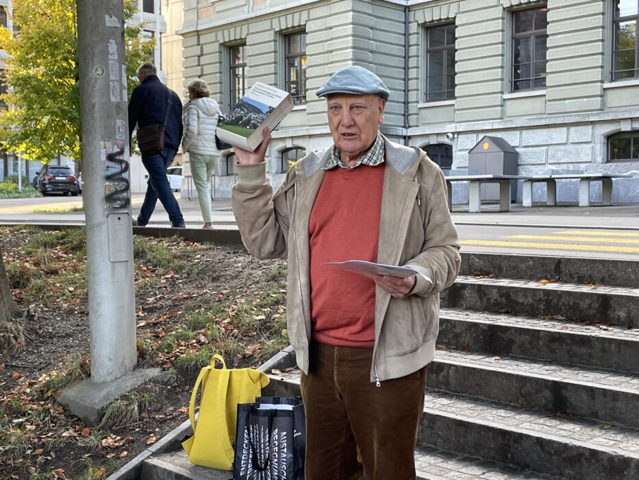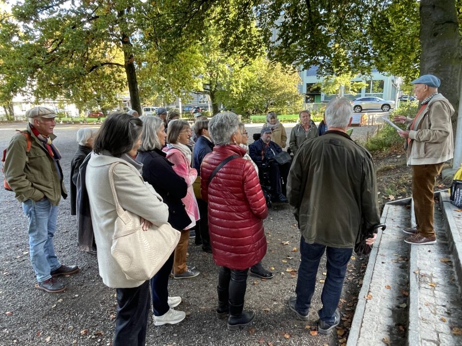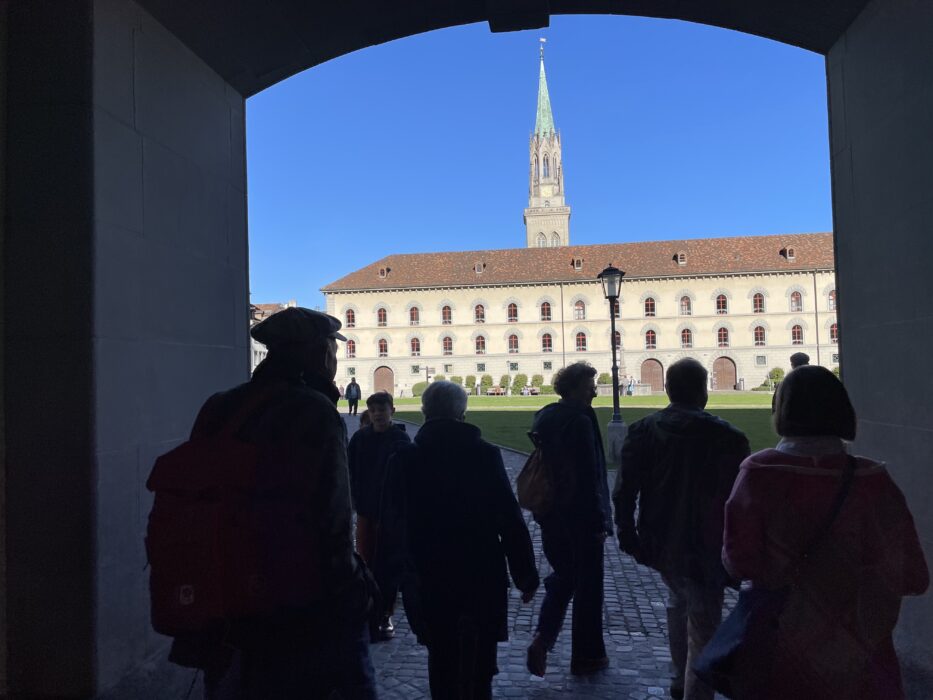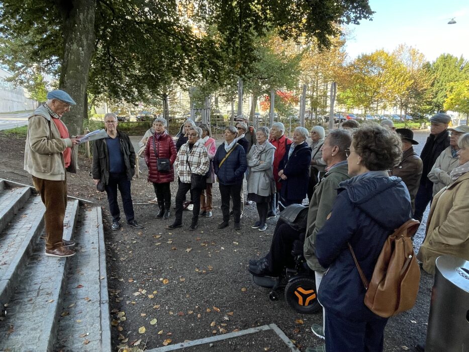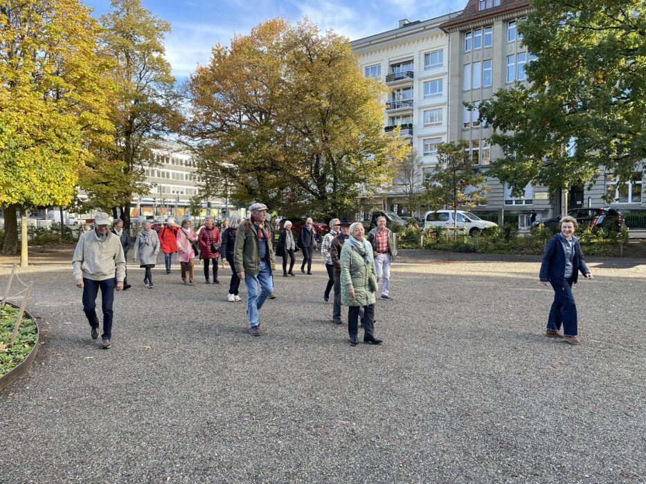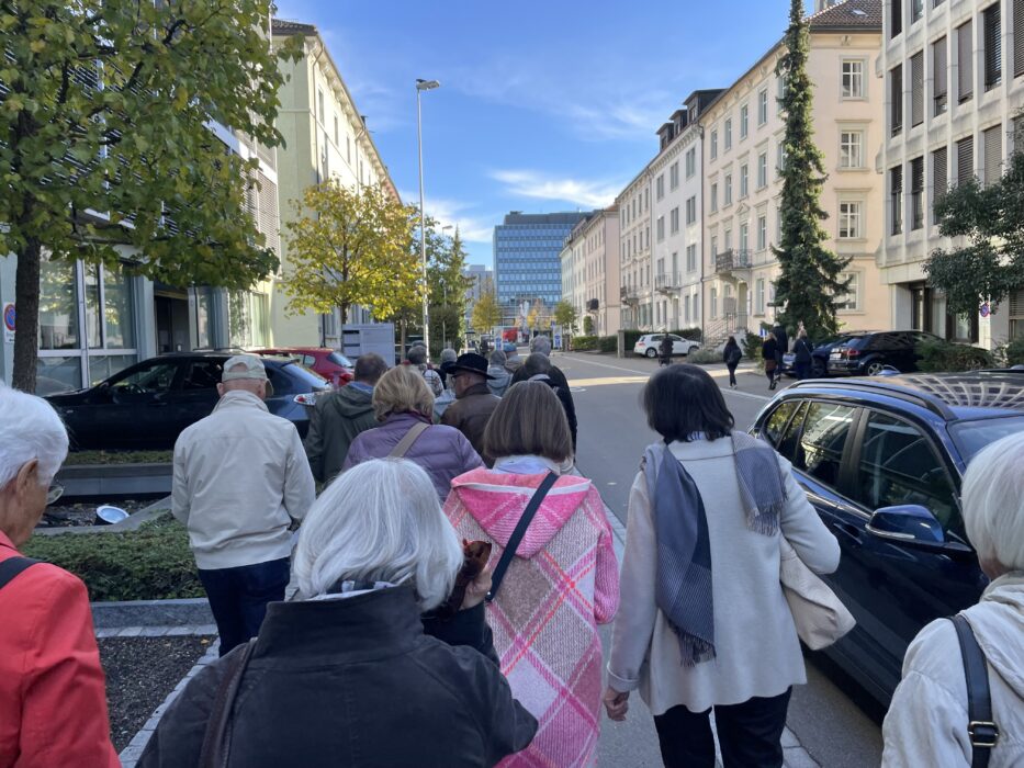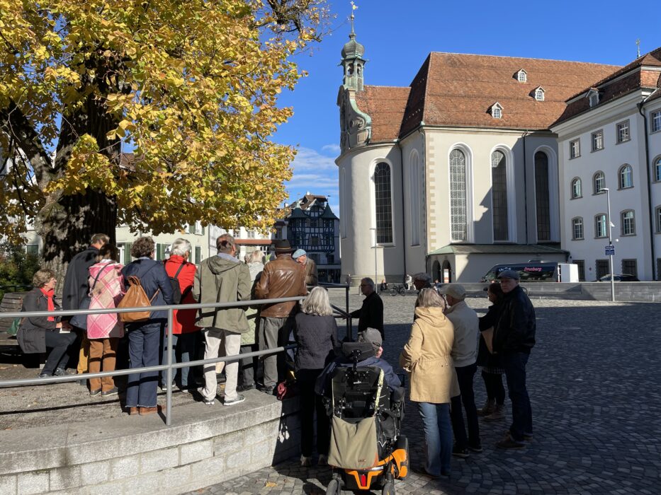 Bei schönstem Herbstwetter begann der Tag mit einer ganz besonderen Stadtführung durch St. Gallen. Angekündigt als literarischer Spaziergang zeigte sich bald, dass der Journalist und Autor Richard Butz neben literarischen Texten und Gedichten auch ein immenses historisches Wissen besitzt und viele Geschichten und Anekdoten mitbrachte. Das machte den Rundgang zu einer abwechslungsreichen und anschaulichen Zeitreise.