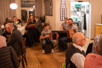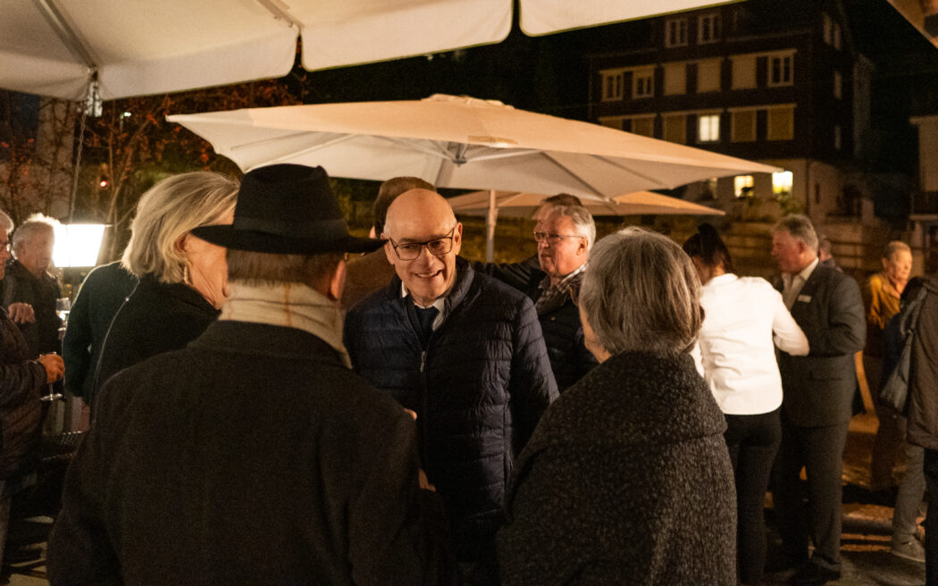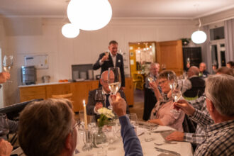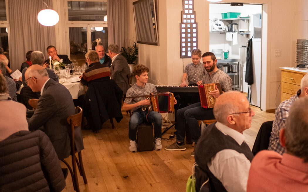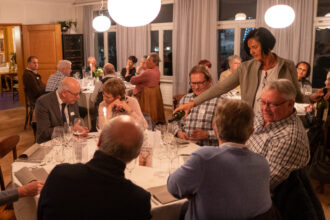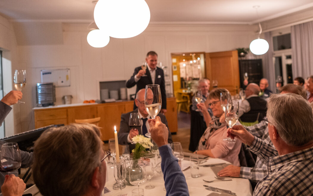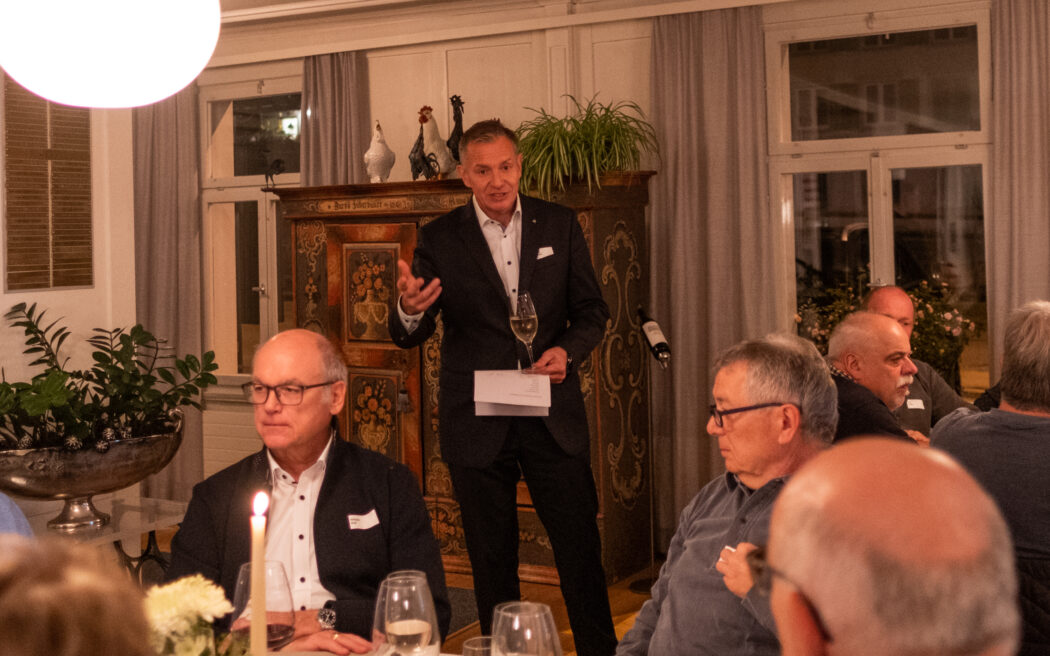 Nach dem Apéro an der frischen Luft wechselte die Gruppe in die behagliche Gaststube zum offerierten Abendessen. Die Grüsse der Gemeinde überachte Gemeinderat Marco Sütterle (Ressort Soziales). Er erinnerte in seiner Ansprache an einige «Grossen» mit dem Jahrgang 1956 (Christine Lagarde, Mel Gibson, Frank-Walter Steinmeier, Björn Borg, Tom Hanks oder Herbert Grönemeyer) und dankte den Anwesenden für ihren Einsatz: «Wir wollen nicht nur den Jungen mit der Jungbürgerfeier etwas Gutes tun, sondern auch euch – ihr habt es euch wohlverdient.» tiz