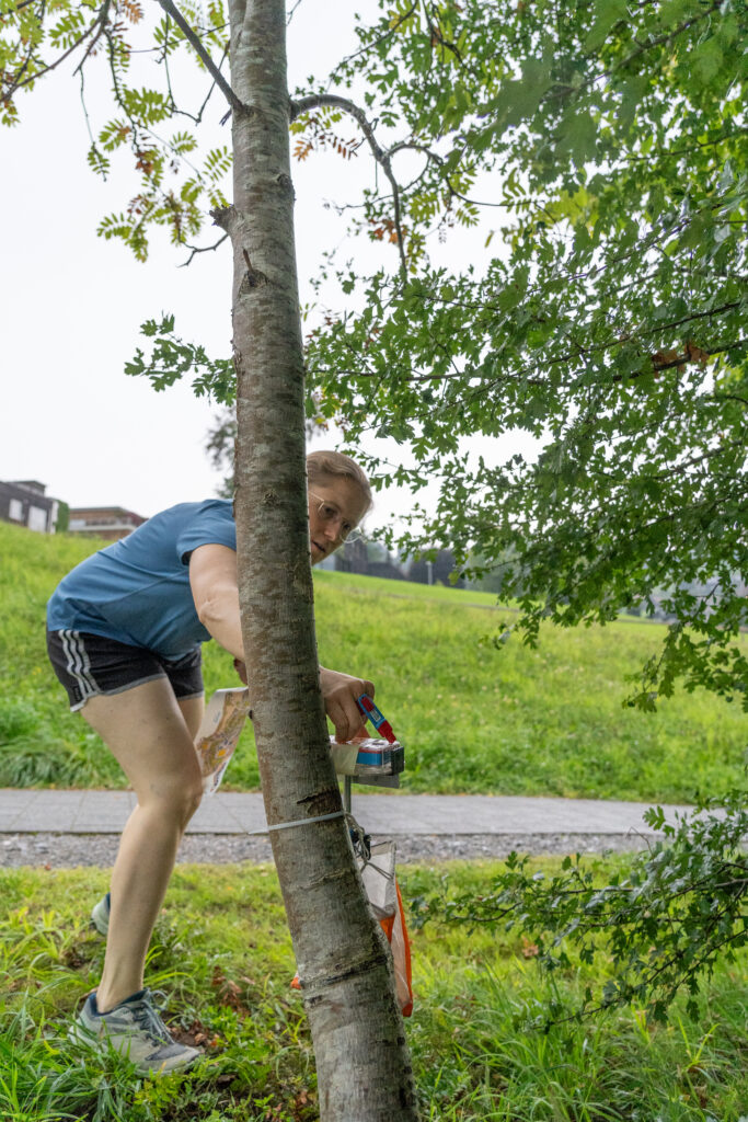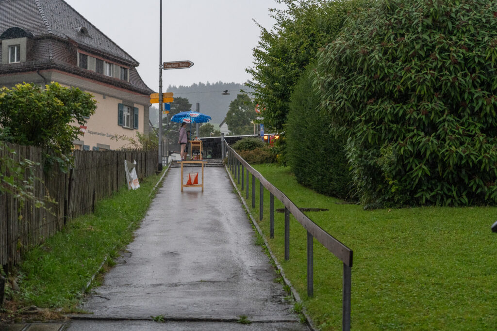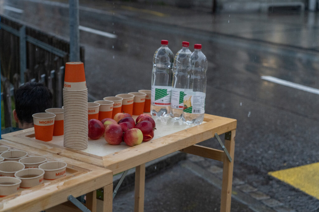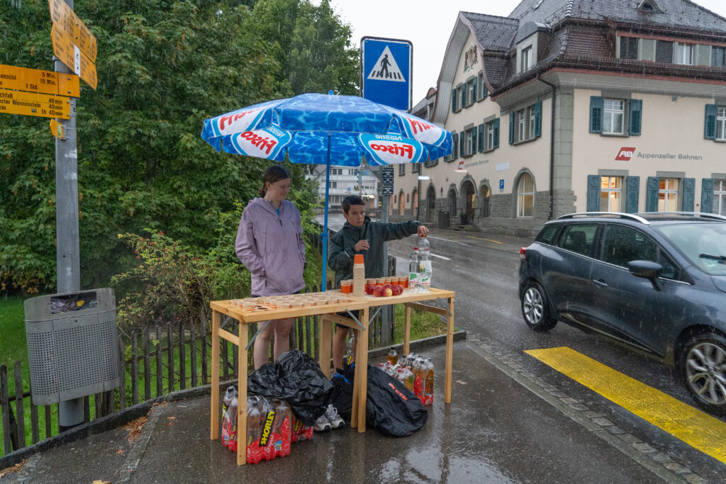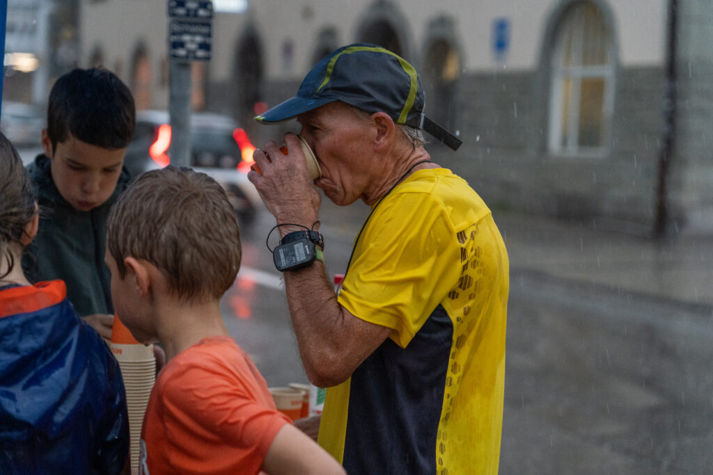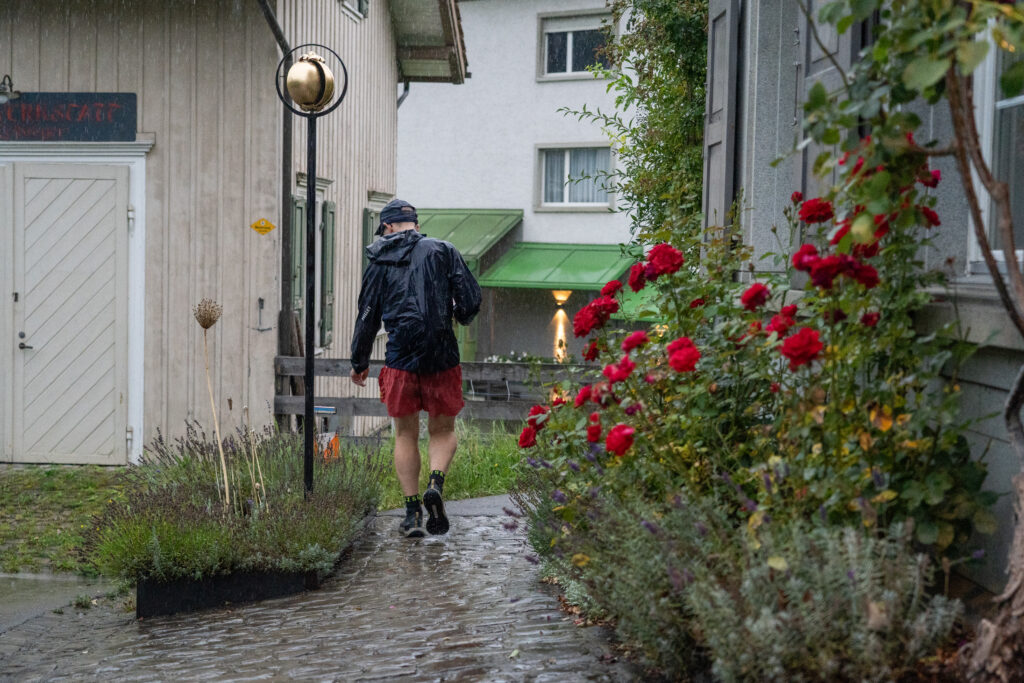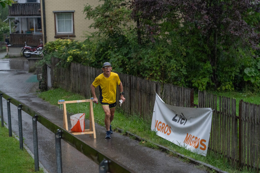 Wäre da nur nicht diese Gewitterzelle. Schon kurz vor Beginn des Anlasses sind am Himmel Blitze zu sehen. Die ersten Tropfen fallen. Den OL-Menschen scheint das aber nicht viel anzuhaben. Sie nehmen es mit Humor: «Wir sind ja wasserfest», sagt eine Helferin. Und: «Hoffen wir, wir werden nicht allzu nass.» Daraus wird aber leider nichts. Aus den Tropfen wird innerhalb einer halben Stunde intensiver Regen. Es scheint «aus Kübeln» zu regnen. Lachende Gesichter sind trotzdem überall zu sehen. Zwischen den Häusern, wo die Posten verteilt sind. Und im Ziel beim Bahnhof.