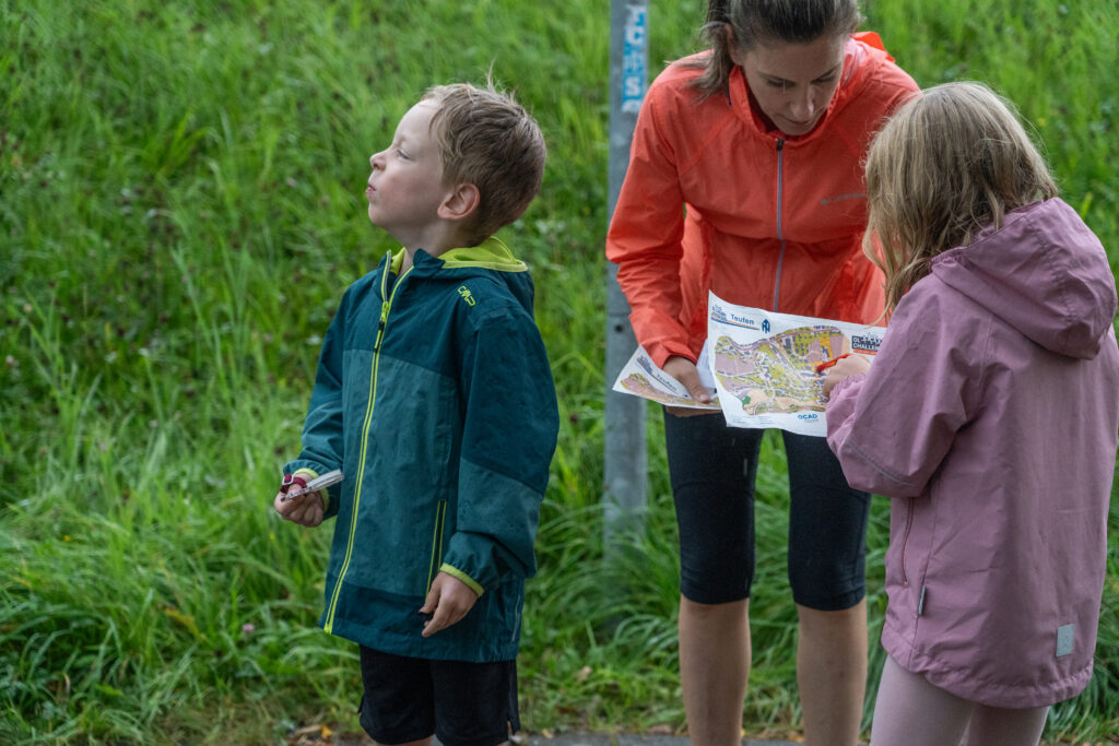Wie gewohnt gibt es aber auch verschiedene «Fun-Strecken» für Neugierige und Familien. Das passt zum Ziel des Anlasses: Allen einen Einblick in den OL ermöglichen. Auch wenn zuvor noch nie mit Karte und «FixLoggern» hantiert wurde. Letztere sind ein elektronischer Ersatz für das einst verwendete Laufblatt beim OL, das dann bei jedem passierten Posten entsprechend gestempelt oder gelocht werden musste. Heute wird alles digital erfasst. Der Piepston beim Scannen des Postens ist besonders für Kinder mit einem spielerischen Aspekt verbunden. Oft fragt danach die Mama oder der Papa: «Und, wohin geht es jetzt weiter?» Gemeinsam finden alle «ihren» Weg. Und bei der Sporthalle Landhaus, wo alle ausgerüstet und instruiert wurden, warten am Ende auch Wurst, Kuchen und Getränke. Die Festwirtschaft wird von der Männerriege des TV betrieben.