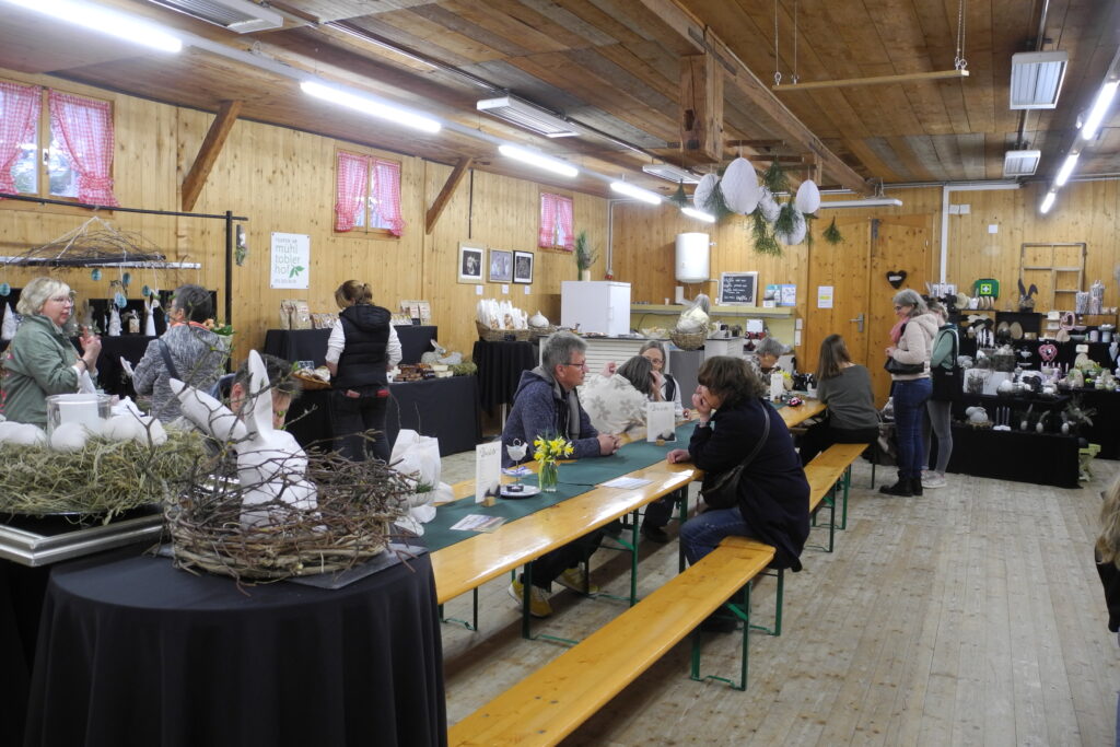 Eine gute Gelegenheit für all jene, die ein passendes Mitbringsel oder ein österliches Geschenk suchen. Am grossen Tisch wurde Kaffee und Kuchen serviert.