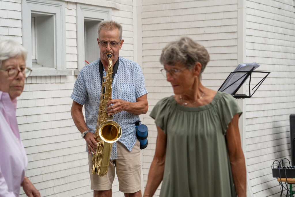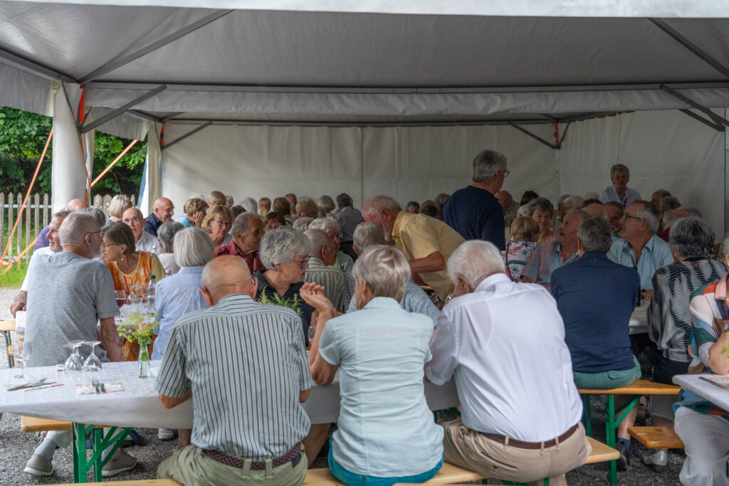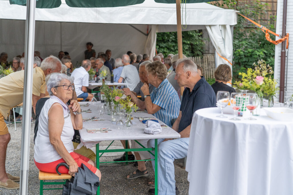 Das Wetter lässt alle etwas bibbern. Um 17 Uhr, als das Sommerfest des Vereins Seniorissimo startet, ist in der Ferne Donnergrollen zu hören. Und es fallen bereits ein paar Tropfen vom Himmel. Unter den Festzelten versammeln sich trotzdem rund 100 Leute. So viele haben sich laut Käthi Zürcher, Organisatorin des Anlasses, angemeldet. Es wird geplaudert, Markus Mani versorgt die Runde mit gemütlichen Saxophon-Klängen. Die Tische sind liebevoll dekoriert.