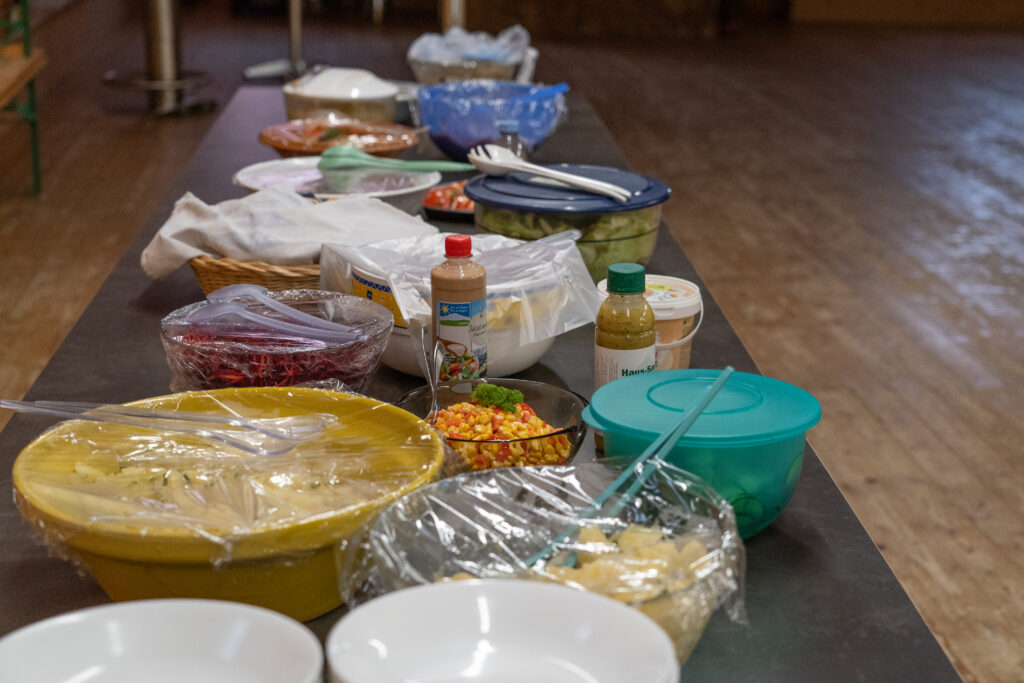 Mit dieser Aufforderung, das Vereinsleben weiterhin aktiv mitzugestalten, wird das Buffet eröffnet. Bald sind überall bunte Teller voll Salat zu sehen, die mit frischen Grilladen ergänzt werden. Und unterdessen guckt auch schon die Sonne hervor. Das Gewitter ist wohl für dieses Mal vorbeigezogen.