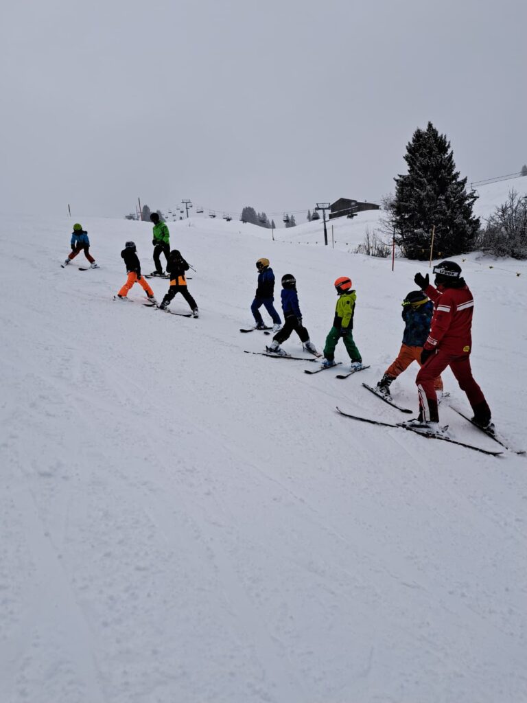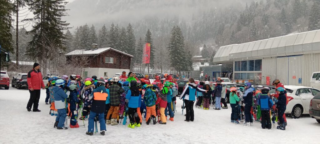 Die Kinder wurden als erstes in leistungsgerechten Gruppen eingeteilt. So verbrachten sie den Vormittag auf den Pisten. Dabei standen sowohl das Üben der Technik als auch der Spass an der Bewegung im Schnee im Vordergrund. Die gute Organisation und die übersichtlichen Verhältnisse im Skigebiet trugen zu einem sicheren und entspannten Ablauf bei.