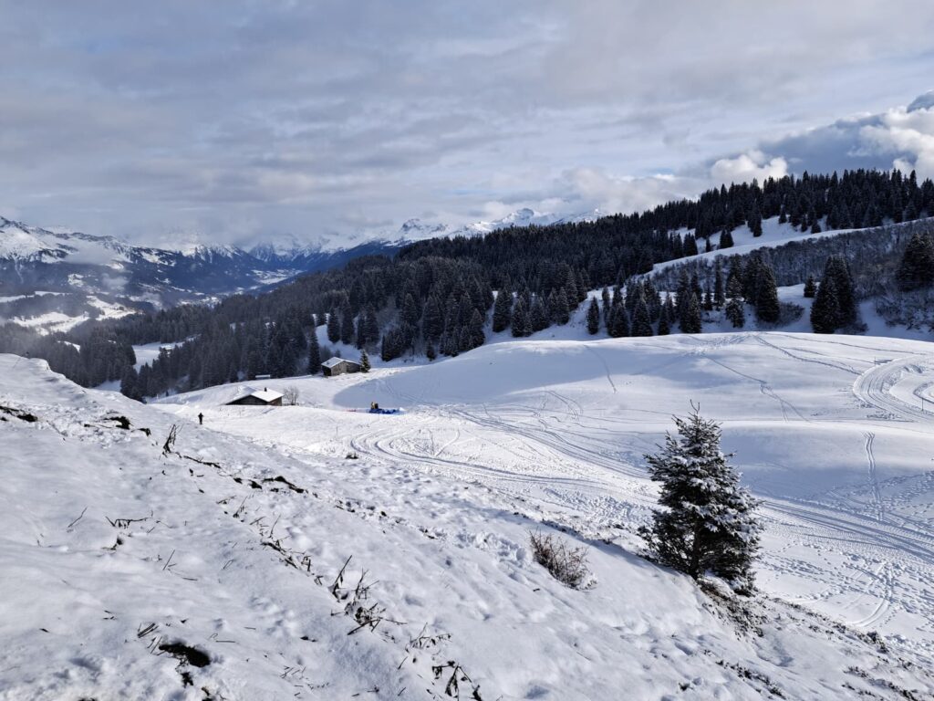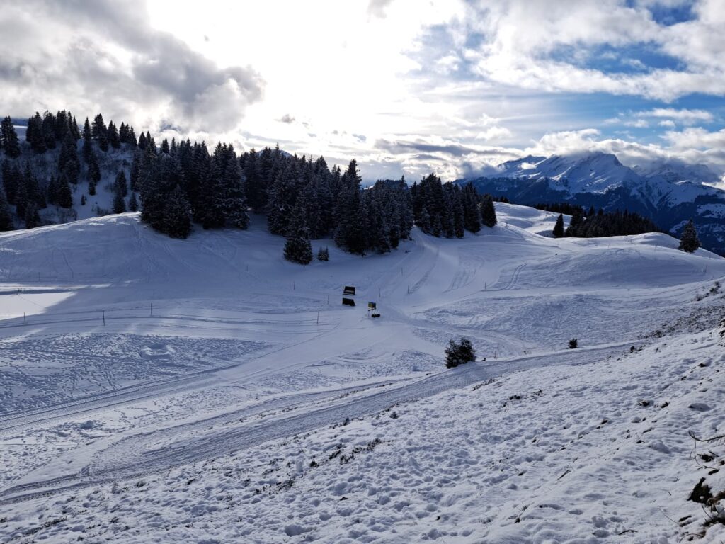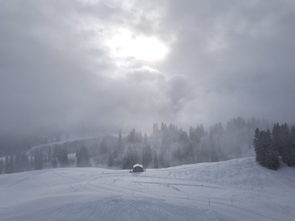Am Morgen zeigte sich das Wetter von seiner winterlichen Seite. Bei etwas bewölkten Verhältnissen und leichtem Schneefall herrschte trotzdem eine angenehme Stimmung auf dem Berg. Die Pistenbedingungen waren insgesamt gut, was den Kindern ideale Voraussetzungen bot, um ihr Können auf den Skiern und Snowboards weiterzuentwickeln.