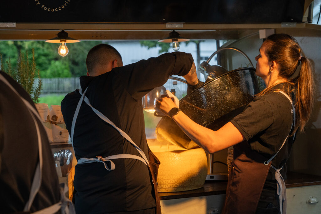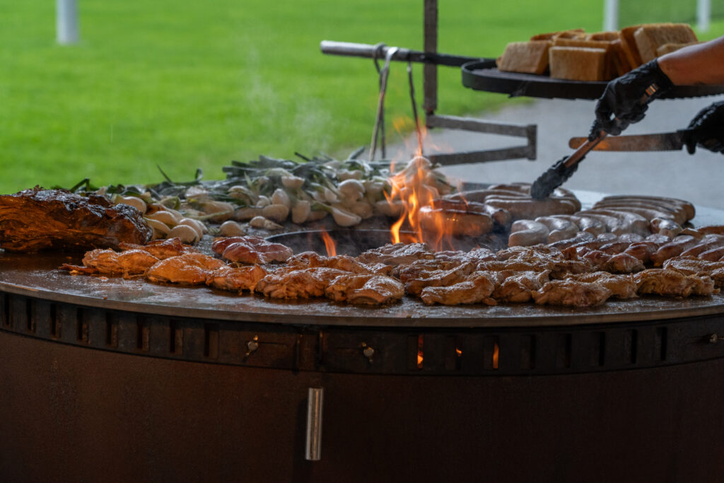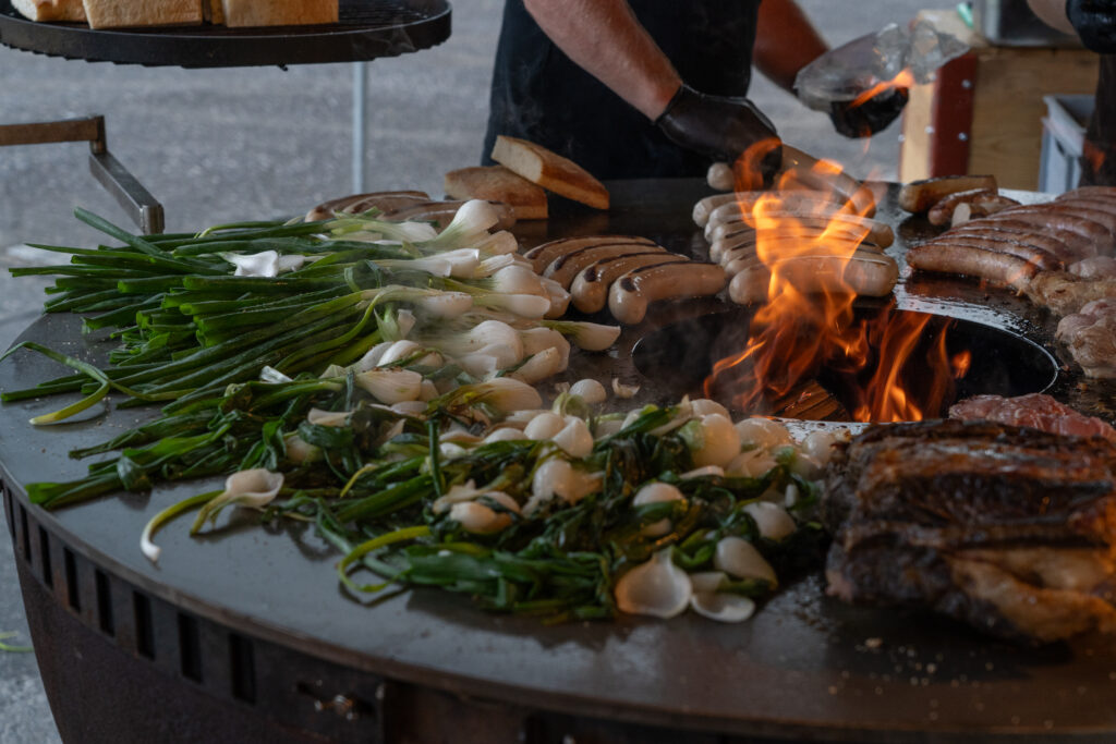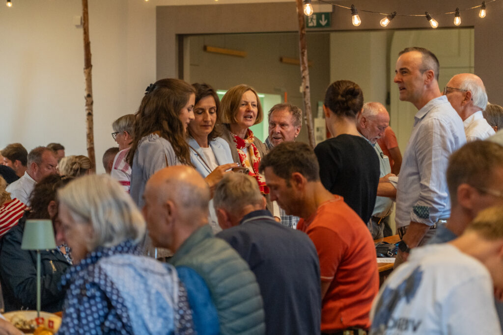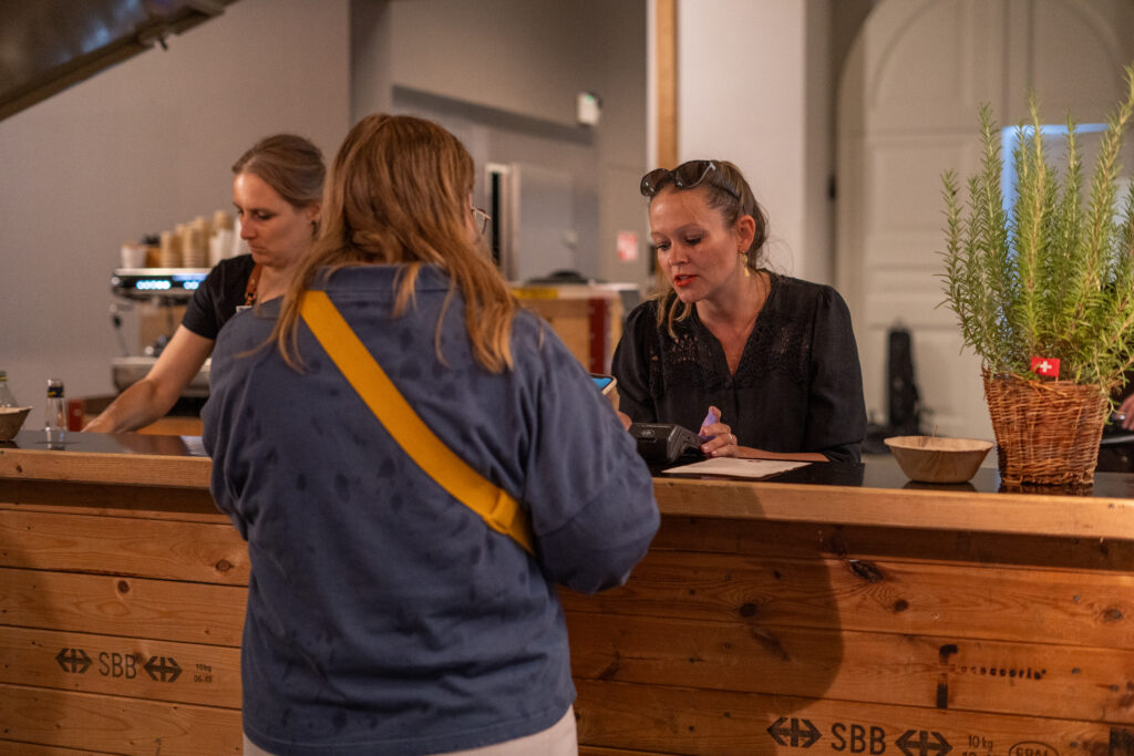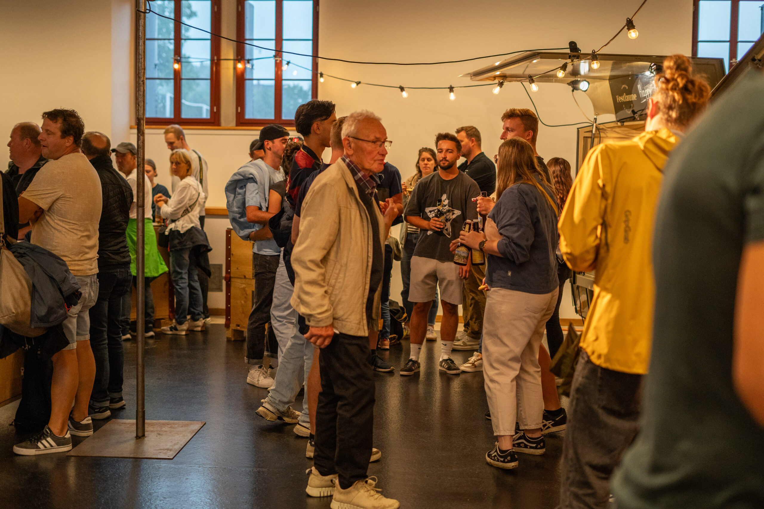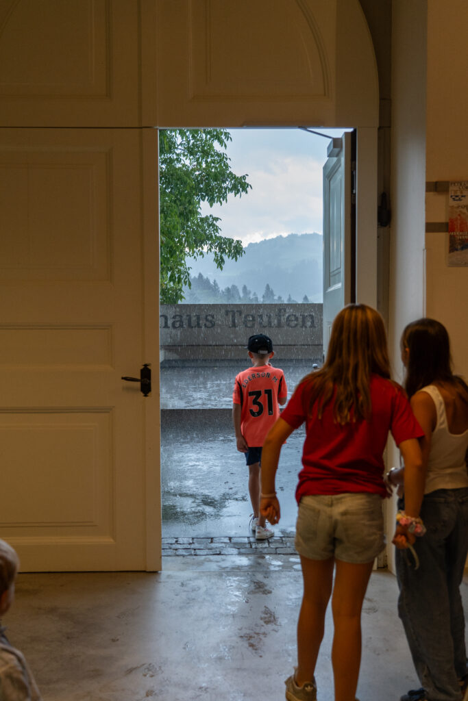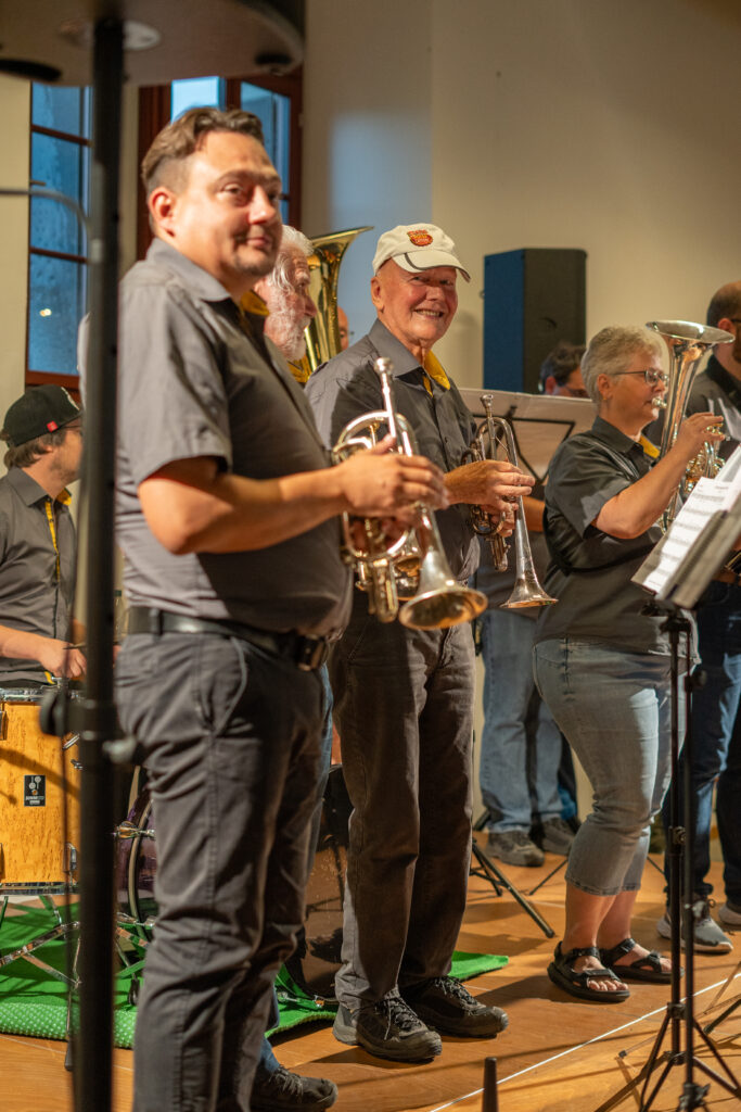 Als die Feier um 18 Uhr beginnt, hat sich der Himmel bereits verdunkelt. Kurze Zeit später fallen dicke Tropfen vom Himmel, ein Sommergewitter. Im Zeughaus verbreiten viele Glühbirnen und Lämpchen festliche Stimmung. «festlaune by foccaceria» sorgt auch dieses Jahr wieder für den kulinarischen Teil und ein stimmiges Ambiente. An den Tischen haben sich bereits einige Besucher und Besucherinnen versammelt. Schon werden die ersten Teller mit dampfendem Fleisch und Risotto reingebracht. Bald stimmt die Harmoniemusik ihr erstes Stück an. Gemeinderat Samuel Fischer lobt in einer kurzen Ansprache die lebendige Gemeinde, danach wird die Nationalhymne gespielt. Begleitet von der Harmoniemusik singen die Anwesenden die erste Strophe der Hymne, darauf folgt das Landsgemeindelied. Später wird das traditionelle Feuer entzündet. Dieses Jahr ist es allerdings kein klassisches Höhenfeuer. Denn die mächtigen Holzscheiter sind direkt vor dem Zeughaus aufeinandergestapelt. So soll das gemütliche Fest noch etwas kompakter werden.