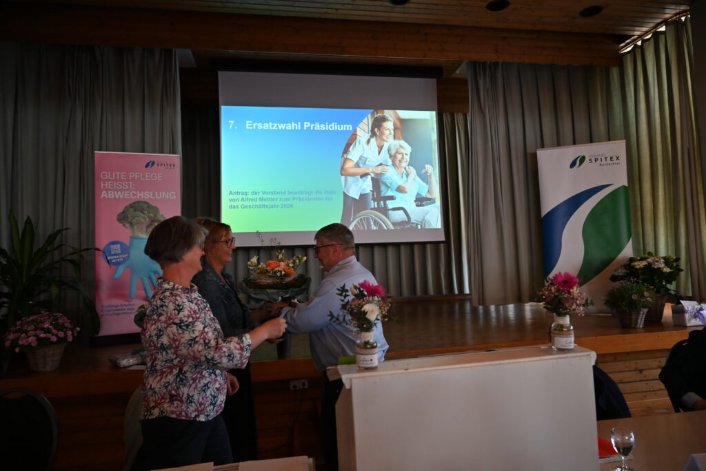 Bei seiner Begrüssung freute sich Alfred Mettler, Präsident ad interim, über die rege Teilnahme, und bat gleich um Applaus für alle, die bei der Spitex mitarbeiten und mithelfen. Im Namen des Gemeinderates Gais begrüsste auch Katja Pantaleo die Anwesenden und betonte wie wichtig die Arbeit und die Weiterentwicklung der Spitex sei. Für ihr Engagement, damit Menschen lange eigenständig leben könnten, gebühre ihnen grosser Dank.