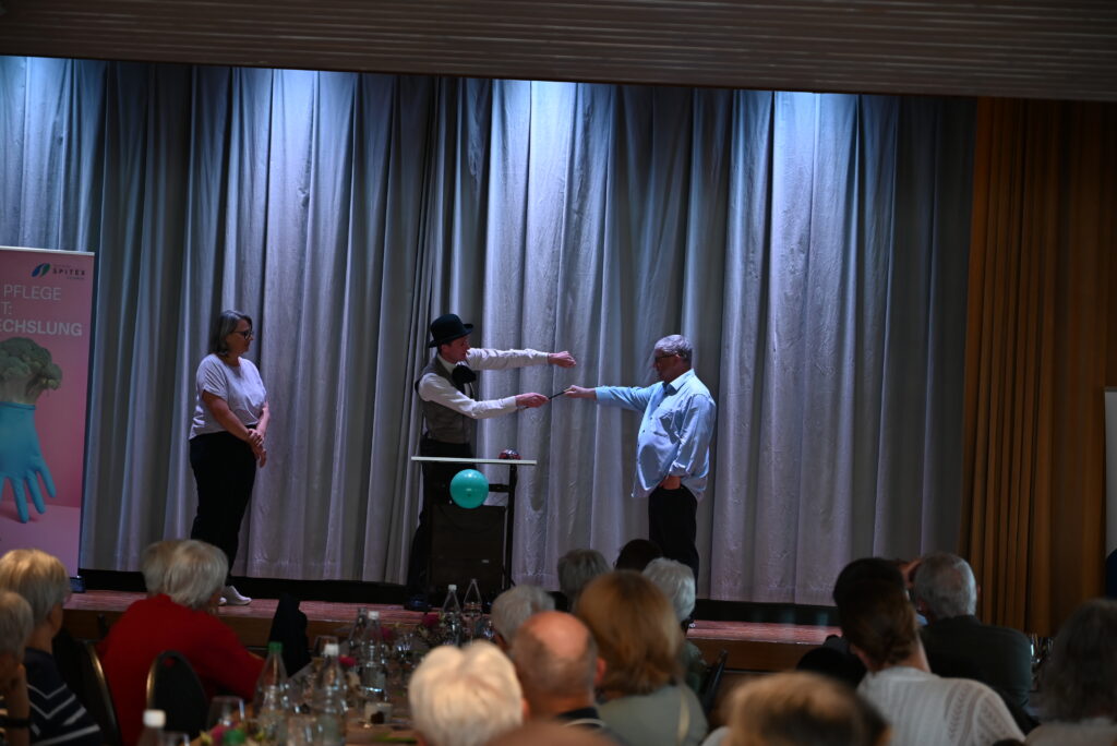 Danach ging es über zum gemütlichen Teil mit einem reichhaltigen Apéro und anregenden Gesprächen, und einige nutzten auch die Gelegenheit, sich kostenlos die Vitalwerte messen zu lassen. Zum Ausklang des nun öffentlichen Anlasses begeisterte Zauberer Marcini mit seinen Tricks, bei denen er das Publikum immer wieder miteinbezog. Zuweilen holte er auch Leute auf die Bühne und sorgte witzig und galant mit seinen Zauberkunststücken für Staunen und viel Erheiterung.