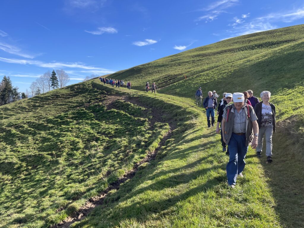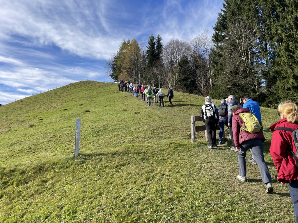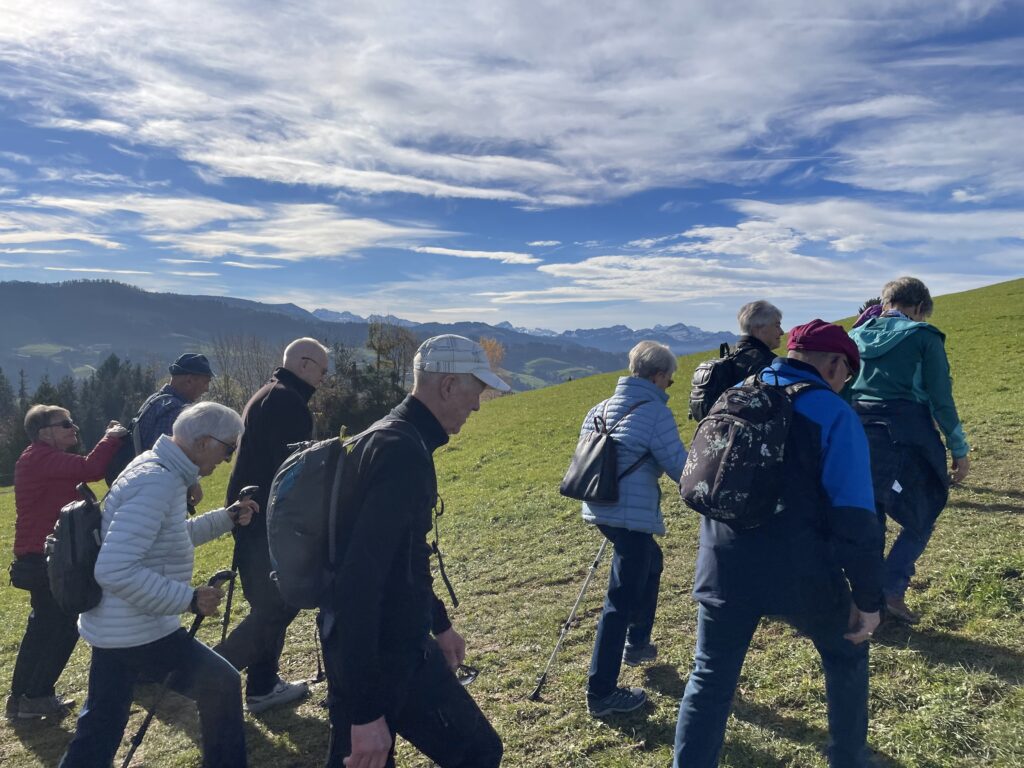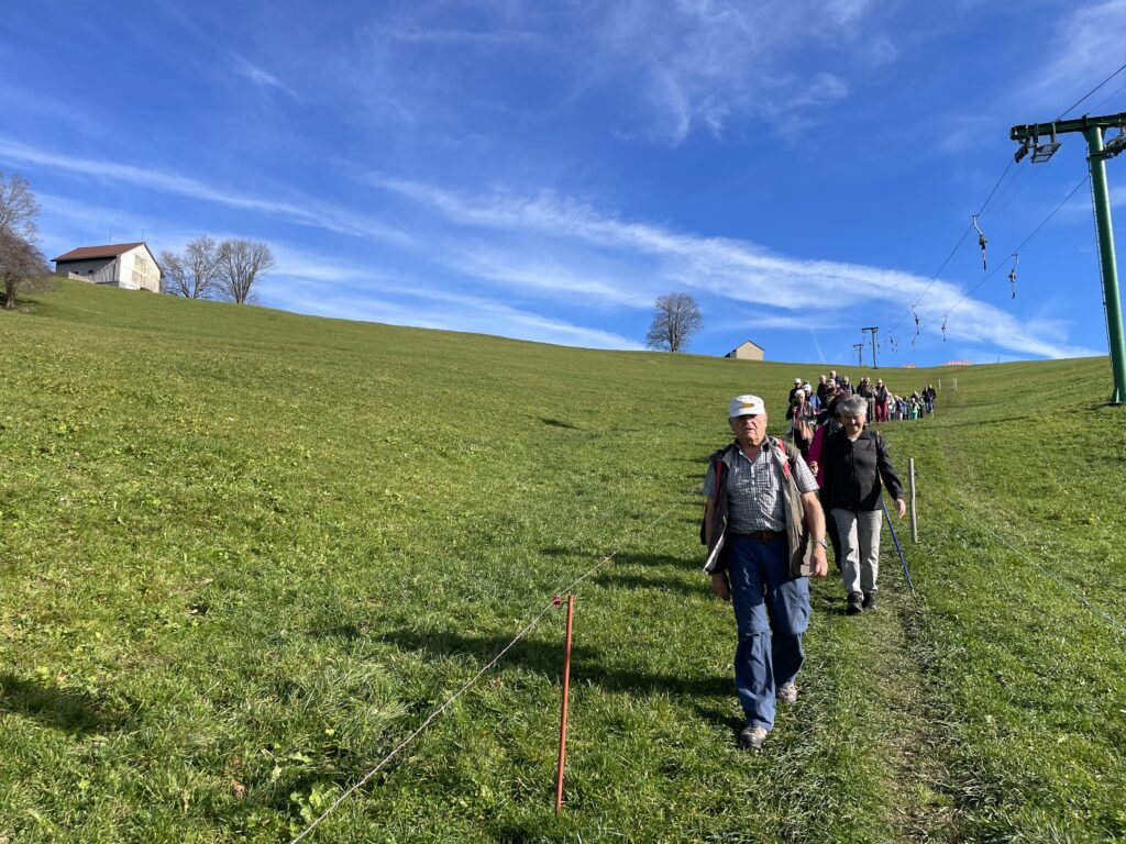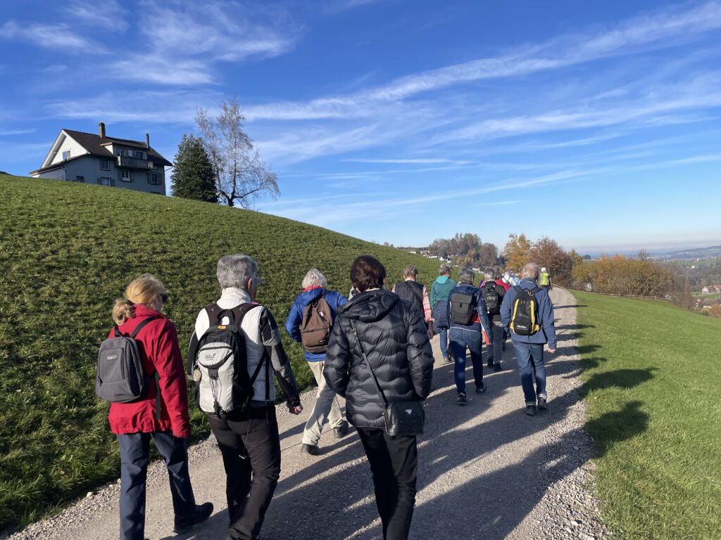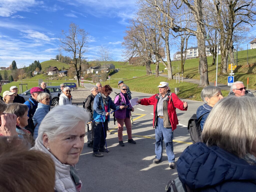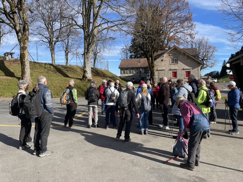 43 Mitglieder der Wandergruppe Tüüfe haben sich zu dieser letzten Wanderung 2025 angemeldet. Drei mussten sich kurzfristig wieder abmelden. Trotzdem ist es ein neuer Teilnahmerekord, nachdem dieses Jahr bereits 39 und 38 Wandernde miteinander unterwegs waren.