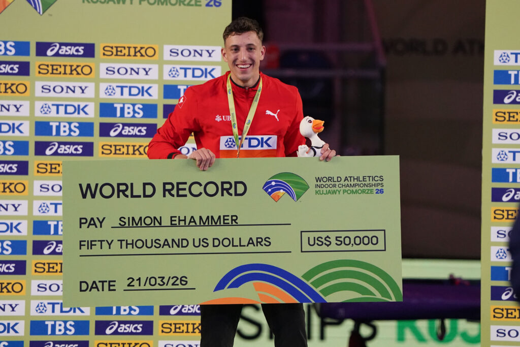 Im polnischen Torùn zeigte Simon Ehammer an der Hallen-WM den Wettkampf seines Lebens und gewinnt zum zweiten Mal nach Glasgow im Jahr 2024 die Goldmedaille im Siebenkampf. Mit einem Total von 6’670 Punkten verbessert er vor den Augen seiner Familie den 12 Jahre alten Weltrekord des Amerikaners Ashton Eaton, aufgestellt an der Hallen WM 2012 in Istanbul, um 25 Punkte.