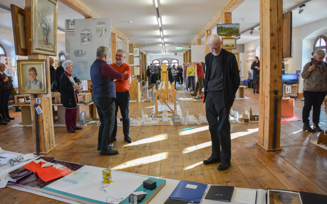 Zur Vernissage des Buches und zum Abschied von Ueli Vogt sind am Sonntagnachmittag viele Freunde und Freundinnen der Institution und des scheidenden Kurators ins Zeughaus gekommen, viele Kunstschaffende und Mitwirkende, Stiftungsräte, Kuratoren, Vertreter von Kulturstiftungen und -ämtern und der Ausserrhoder Kulturdirektor Alfred Stricker. Stiftungsratspräsident Matthias Tischhauser begrüsste sie unter dem Dach, dort wo auch das Vermächtnis der Baumeister Grubenmann ausgestellt ist. Er gab bekannt, dass sich Ueli Vogt als Abschiedsgeschenk ein Bild von Hans Schweizer aussuchen darf. Der frischpensionierte Kurator des Kunstmuseums und der Kunsthalle Appenzell, Roland Scotti, hielt die «Überraschungsrede ». Er bedauerte, dass eine Zusammenarbeit mit Vogt nicht möglich war – zu unterschiedlich waren Aufgaben und Ausrichtungen in ihren Häusern. Für Scotti sei das Zeughaus eine Parallelwelt gewesen, erinnerte er sich an den ersten Eindruck, aber aus dem Chaos würden bekanntlich Sterne geboren. Das Chaos, die Dissonanz im Zeughaus hätten Denken erzeugt, das Sehen herausgefordert, den Besuchenden Gedankensterne mitgegeben – was bei konventionellen Ausstellungen oft vermisst werde. Vor allem die vibrierenden Zwischenräume lobte er und die Zwischenstellungen: «Ein herrliches Instrument zur Weiterführung und Einbindung». Das habe eine ständige Wachheit auf einem soliden Ideenfundamt bedingt.