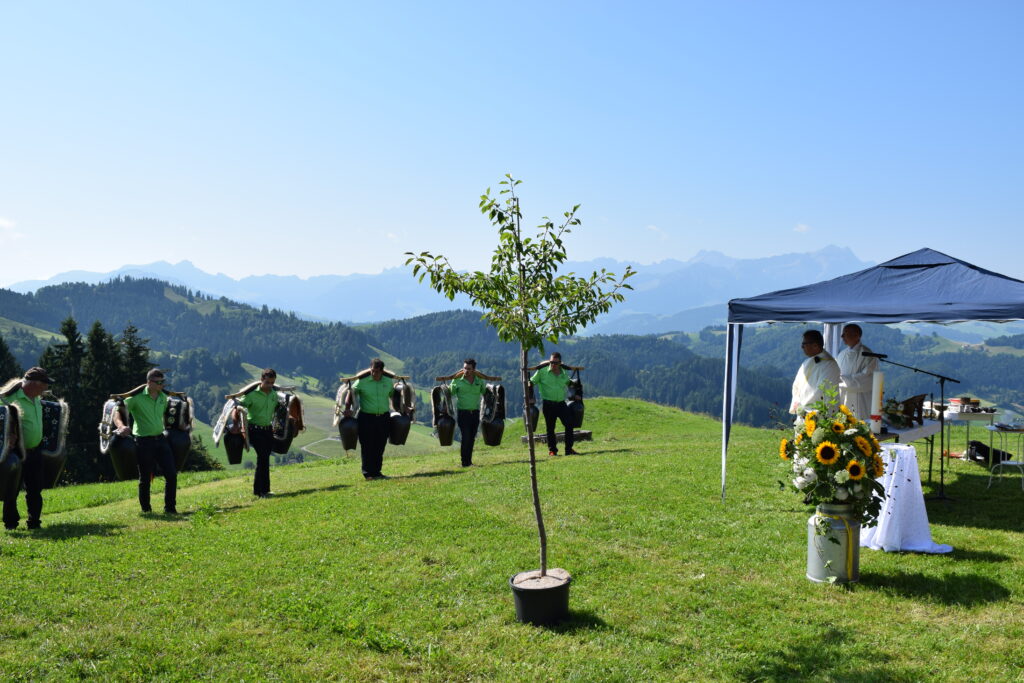 Musikalisch umrahmten die Säntis Trychler mit ihren Schellenklängen und die Brass Band Trogen mit berührenden Melodien den Gottesdienst und schufen eine festliche Atmosphäre. Im Anschluss gab es feine Bratwürste vom Grill, erfrischende Getränke und geselliges Beisammensein – ein perfekter Ausklang unter strahlend blauem Himmel. Wer an diesem Tag den Weg auf die Hohe Buche gefunden hatte, ging nicht nur mit schönen Eindrücken, sondern vielleicht auch mit einer neuen Bewusstheit für die eigenen Wurzeln wieder nach Hause.